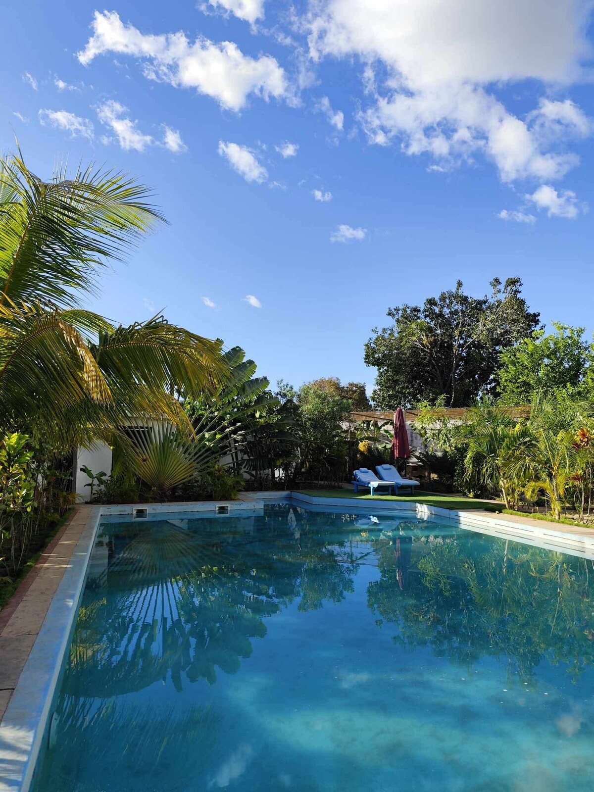 Ta mirna nastanitev ponuja sproščujoče bivanje za vso družino s 27-metrskim bazenom in jaccouzyjem, masažno sobo, igriščem za bulvarje, barom na koncu bazena in zelenim okoljem, obdano s palmami ,brez kakršnegakoli pogleda. pet apartmajev z garderobo, štiri zasebne kopalnice z WC-jem in prho, čudovita kuhinja ter notranja in zunanja dnevna soba, vse klimatizirano, čistilka je na voljo, tako da lahko preživite zelo dobre počitnice v majhnem raju