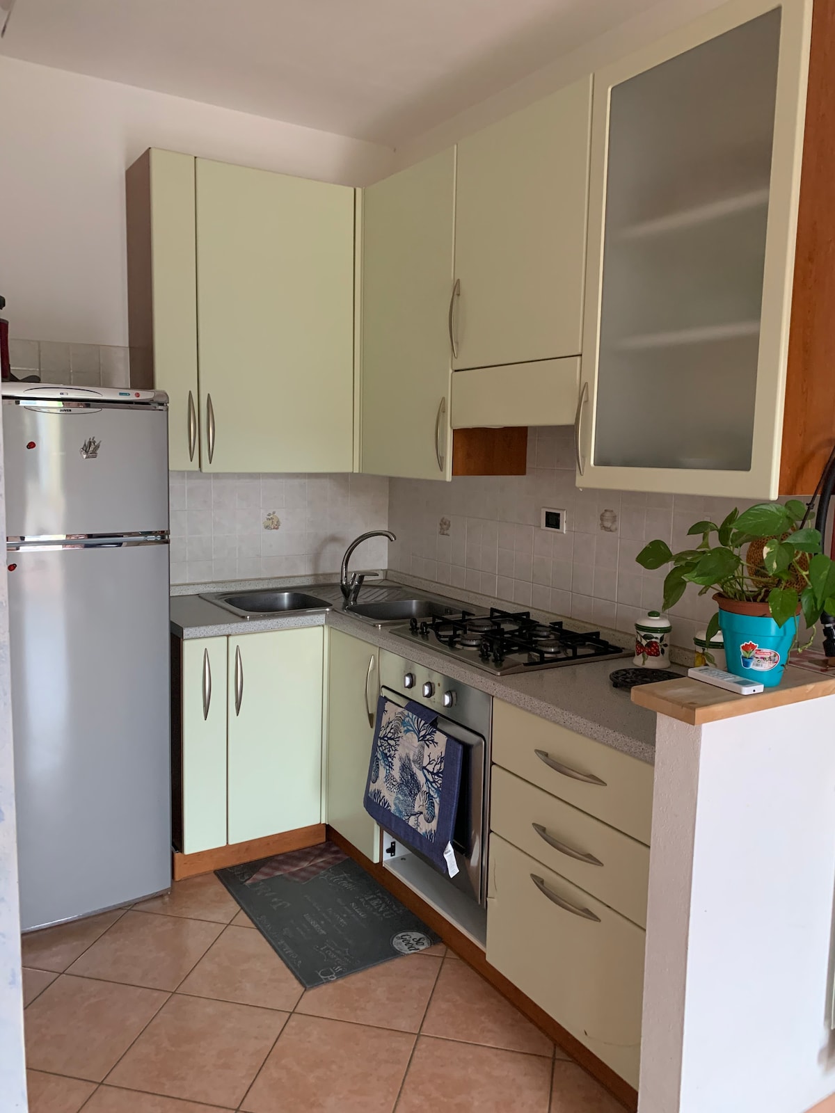 Prijetno svetlo stanovanje, ki se nahaja v strateškem položaju. Okusno in preprosto opremljeno nudi vse udobje za krajša in daljša bivanja. Nahaja se v prvem nadstropju in je sestavljen iz dnevne sobe, kuhinje, opremljene z vsemi aparati, dvoposteljne spalnice (zibelka na zahtevo), enoposteljne spalnice s kavčem (enoposteljna ali dvoposteljna), kopalnice z okenskimi vrati in tušem/kad. Prostorna in opremljena veranda. Brezplačni Wi-Fi je na voljo.