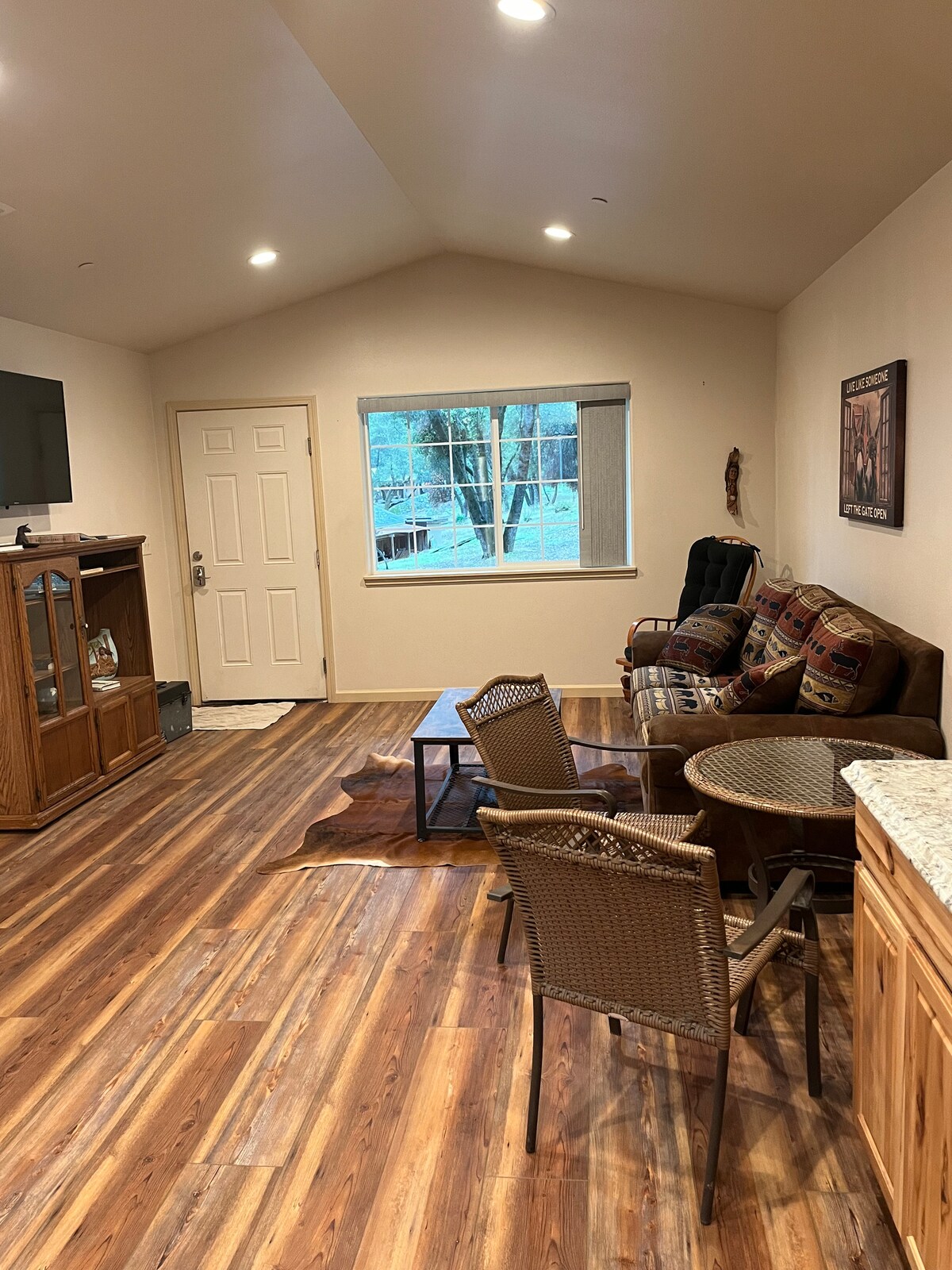 Poskrbite, da bo vse preprosto v tem mirnem bivališču, ki se nahaja v središču mesta. Brez sosedov, zelo zaseben umik s kamnitimi detajli po meri. Nahaja se na zasebnem ranču 2 milji stran od Hwy 41 s sprehajalnimi potmi in številnimi prostoživečimi živalmi ter piščanci, jagnjeti in konjem! 7 minut do zgodovinskega mesta Coarsegold, 15 minut od Oakhursta in 35 minut do južnega vhoda v narodni park Yosemite pri Hwy 41.