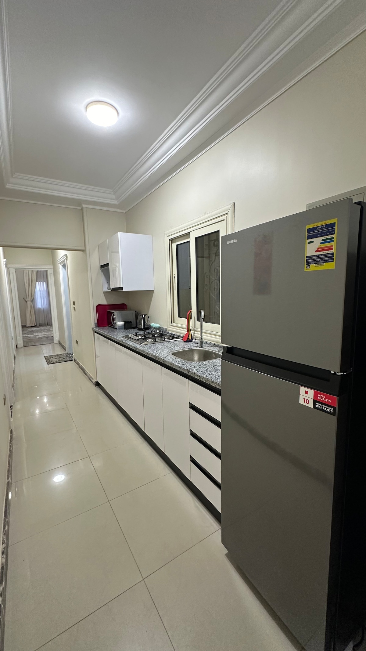 Modern Apartment with Full Facilities Stay in a stylish, fully equipped apartment offering everything you need for a comfortable stay. Enjoy free Wi-Fi, a smart TV, and a kitchenette with a microwave, cooker, kettle, and refrigerator. Welcome amenities include water, tea, and coffee for your convenience. An air fryer is also available upon request. 24-hour reception is available to assist you anytime.