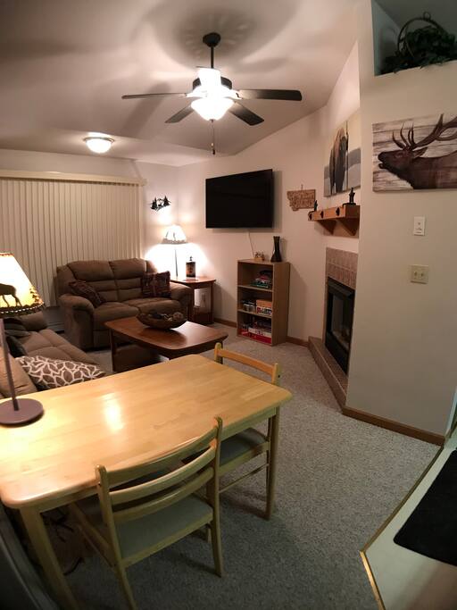 Studio in near the Big Sky Mountain Village. Minutes away from the best skiing in the America, as well as mountain biking and hiking for the summer traveller. Located on the first floor. Full kitchen and bath, dining area, and comfy living room. Condo includes WiFi and a TV (with Netflix and amazon prime) for relaxing after a long day of adventures. Free bus stops every hour just steps away to take you to the chair lifts or Mountain restaurants.
