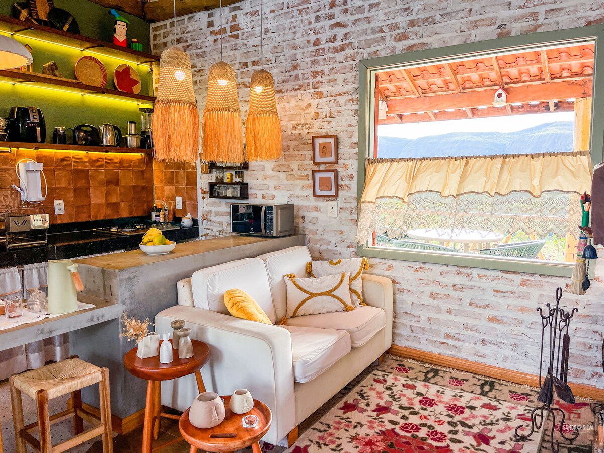 Sprostite se v tem mirnem in elegantnem prostoru. Zatočišče sredi narave, le 8 km od Carrancasa, idealno za počitek, upočasnitev in meditacijo. Dekor, sestavljen iz brazilskih umetniških predmetov, ustvarja prijetno in edinstveno vzdušje – kot nalašč za pare, ki iščejo dneve za sprostitev in povezovanje. Z viseče mreže na balkonu uživajte v osupljivem razgledu na Serra das Bicas, ki vas vsak dan vabi k razmišljanju. Hišni ljubljenčki so dobrodošli, saj si tudi vaši ljubljenčki zaslužijo uživati v tem oddihu.