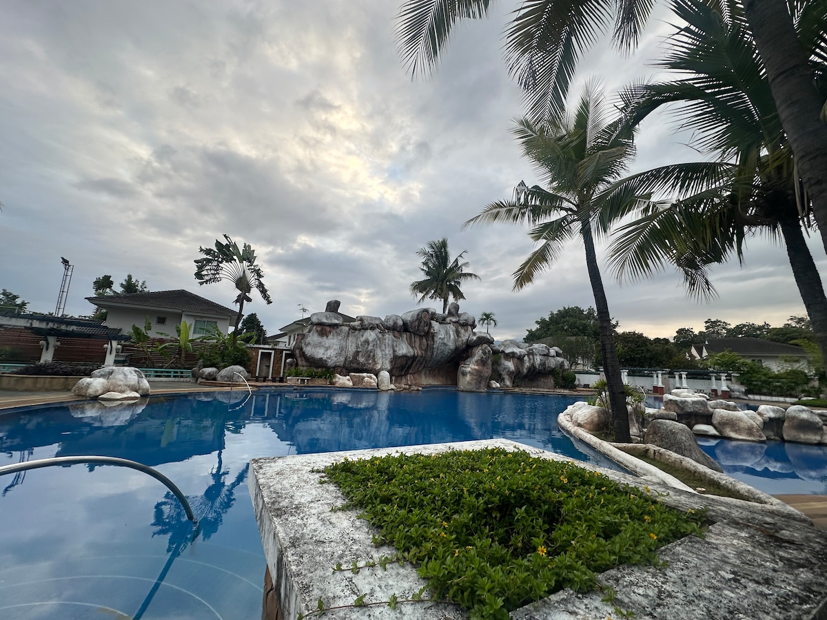 A lovely stylish house for rent. The Whitehouse is 2 bedroom,2bathrooms, 1living room and 1 kitchen. ... located in the garden by Ping river....with mountain view not far from the oldtime and city center... 15 min by motorbike to oldtown. 20 min to Nimman 5 min to Makro super center by car 30 min to Mon Jam Our area are peaceful and relax....The house share common area (garden and community area) with cafe and a few neighbours suitable for family, couple and friends.