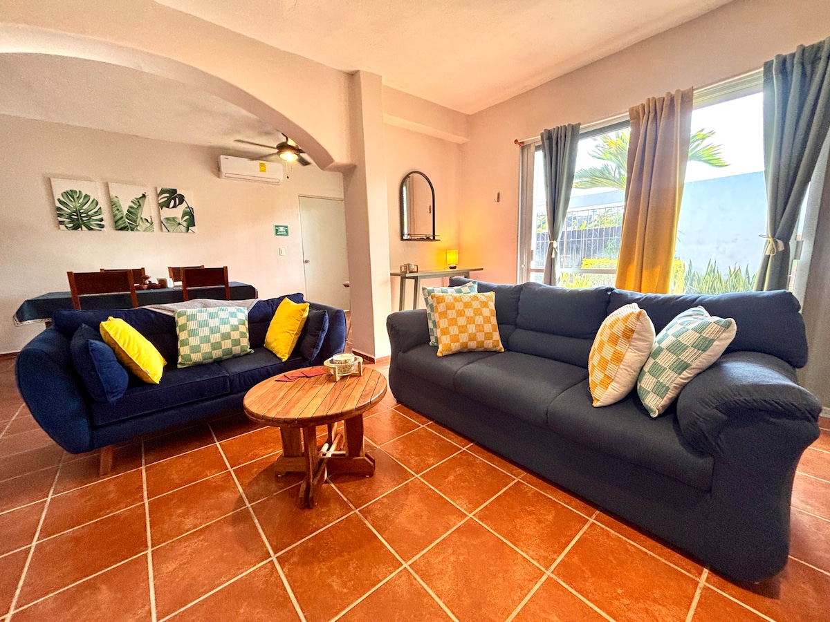 Anchor Mahahual predstavlja Casa Azul Stanovanje na Maleconu (promenada) v mestu, idealno za družine in pare, ki potujejo skupaj. Bazen!! Enota v drugem nadstropju. Ima 3 spalnice, vključno s pogradom za otroke ali manjše odrasle, 2 kopalnicama, kuhinjo, plinskim štedilnikom, mikrovalovno pečico, hladilnikom IN hitrim internetom StarLink. Stanovanje se nahaja 2 nadstropji višje od tal.