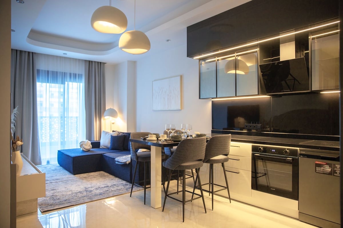 stanovanje je tik ob plaži Kleopatra. tretja izboklina do plaže. in tudi peš do mesta. lahko se odpravite tudi z avtobusom v 5 minutah. avtobus je na voljo ves dan. Novo prenovljeno stanovanje s skandinavsko zasnovo. polno opremljeno. 3 klimatske naprave. neomejen internet. Android TV (netflix,youtube). ima zelo velik balkon s pogledom na morje in gore. čez stavbo je velik migros in apotheke. tudi peš do avtobusne postaje. velika dnevna soba in ločena kuhinja. brezplačno otopark.