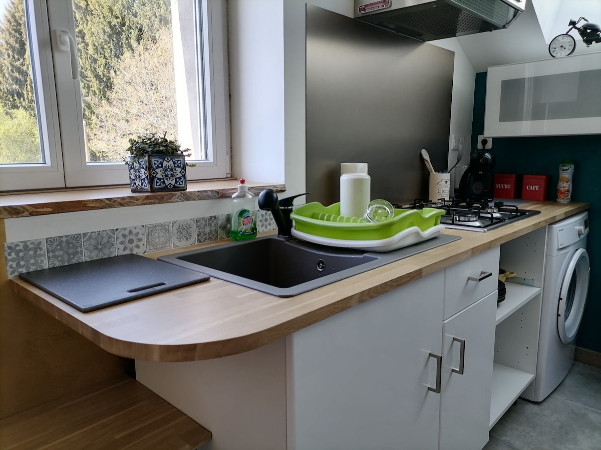 V osrčju vasi je udobna nastanitev s površino 50 m2 v 2. nadstropju. Nahaja se med Vesulom (20 min) in Luxeuil-les-Bains, spa (10 min). Besançon in Belfort sta oddaljena 1 uro V bližini planote Plateau des Mille Étangs, Planche des Belles Filles, steklarna Passavant, izvira Planey. Idealno za spa goste ali strokovnjake ali ljudi, ki želijo odkriti regijo, ki jo je vredno obiskati Raztegljiv kavč + udobna zakonska postelja (160*200 cm) Varnostna škatla za ključe Hišni ljubljenčki niso dovoljeni Kajenje ni dovoljeno Najmanj 2 nočitvi