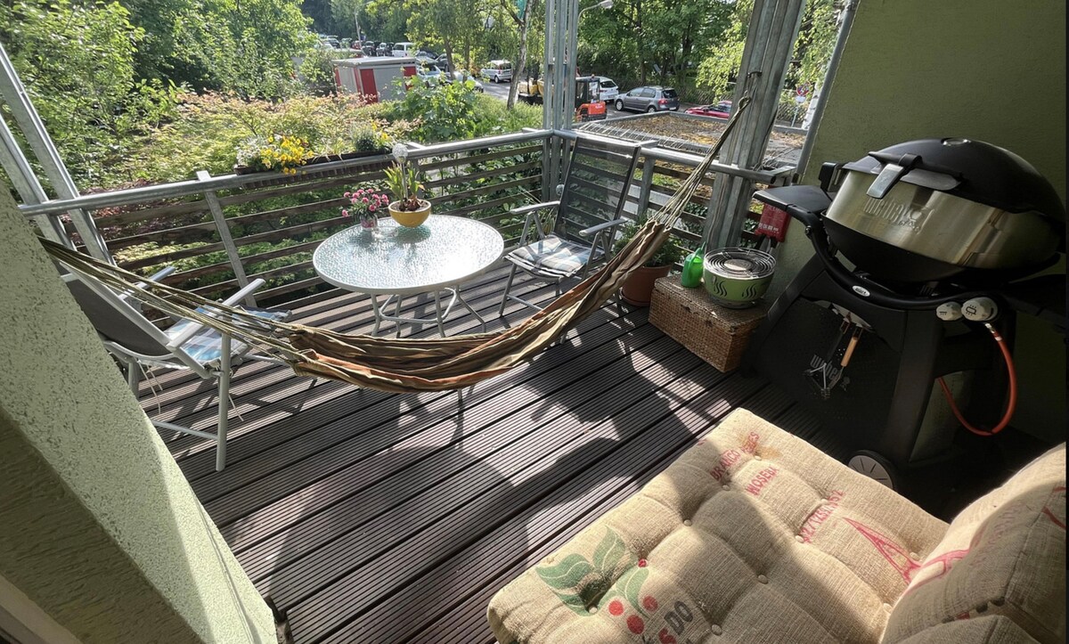 Tiho in elegantno opremljeno 1,5 sobe.- Stanovanje na osrednji lokaciji. Našli boste sodobno kuhinjo z jedilnico, novo kopalnico s prho od tal do stropa in svetlo dnevno sobo/spalnico s televizijo z ravnim zaslonom, veliko vzmetno posteljo in kotiček za branje z internetom/Wi-Fi-jem. V neposredni bližini se nahajajo supermarket, pekarna, slaščičar, restavracije in še veliko več. Lastno parkirno mesto za avtomobile in neposredna povezava S-Bahn do FFM Messe/HBF JE mogoče priti peš.