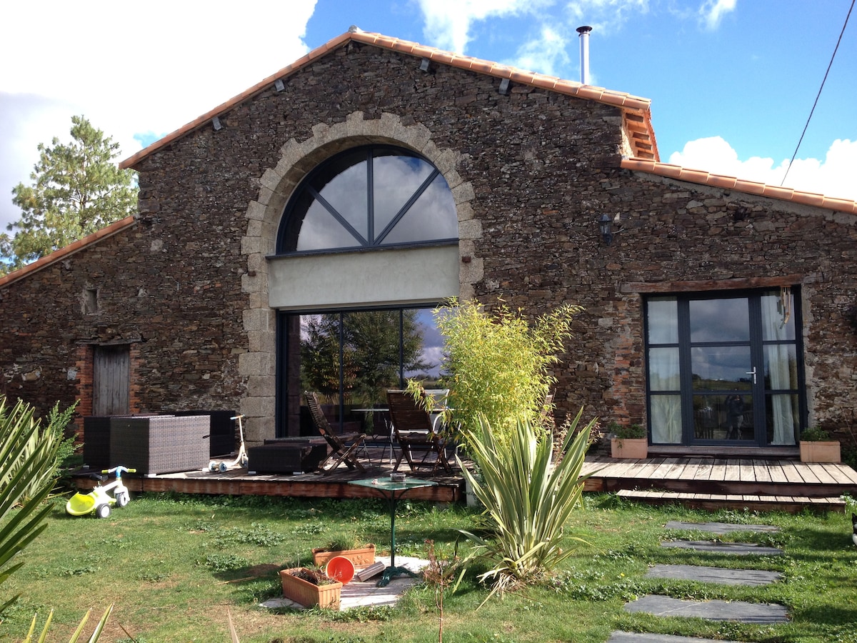 Pridite in si napolnite baterije v naši očarljivi hiški na deželi, ki meji na prezbiterij iz 17. stoletja, severno od Nantesa. Staro kmetijsko poslopje z neodvisnim vhodom v predelanem slogu s površino 70 M2. Spoštujemo vašo potrebo po počitku in diskreciji (vstop/ izstop z varnostno škatlo za ključe). Naša hiška na deželi ponuja vrhunsko opremo: zakonska postelja 180X200 /XXL prha/ SPA z zasebno zunanjo teraso/opremljena kuhinja Nespresso aparat Wi-Fi TV z Netflixom in video bonusom