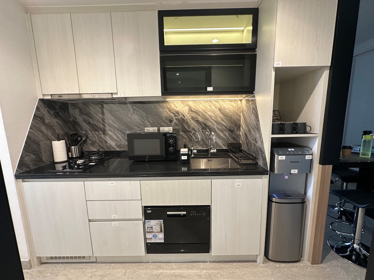 on the 30th floor with 113sqm of living space. 2 bedrooms + 2 bathrooms. primary bedroom has a king-size bed with ensuite. secondary bedroom has a day bed with 2 drawers and 2 mattresses( total size 160x200cm). 2 extra floor mattresses are provided with size 100x200 and 80x190. which can be placed wherever the guests prefer. no dental kits and detergent for washing clothes provided. everything else you would normally expect is provided. maid bedroom (on request) and half bathroom is available.