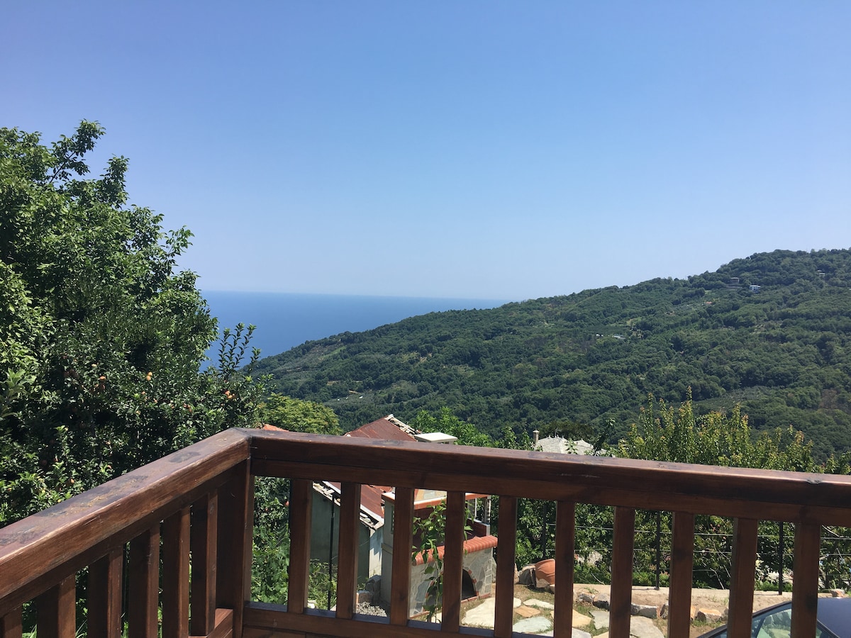 Cozy Blue Stone House with a stunning Sea View.