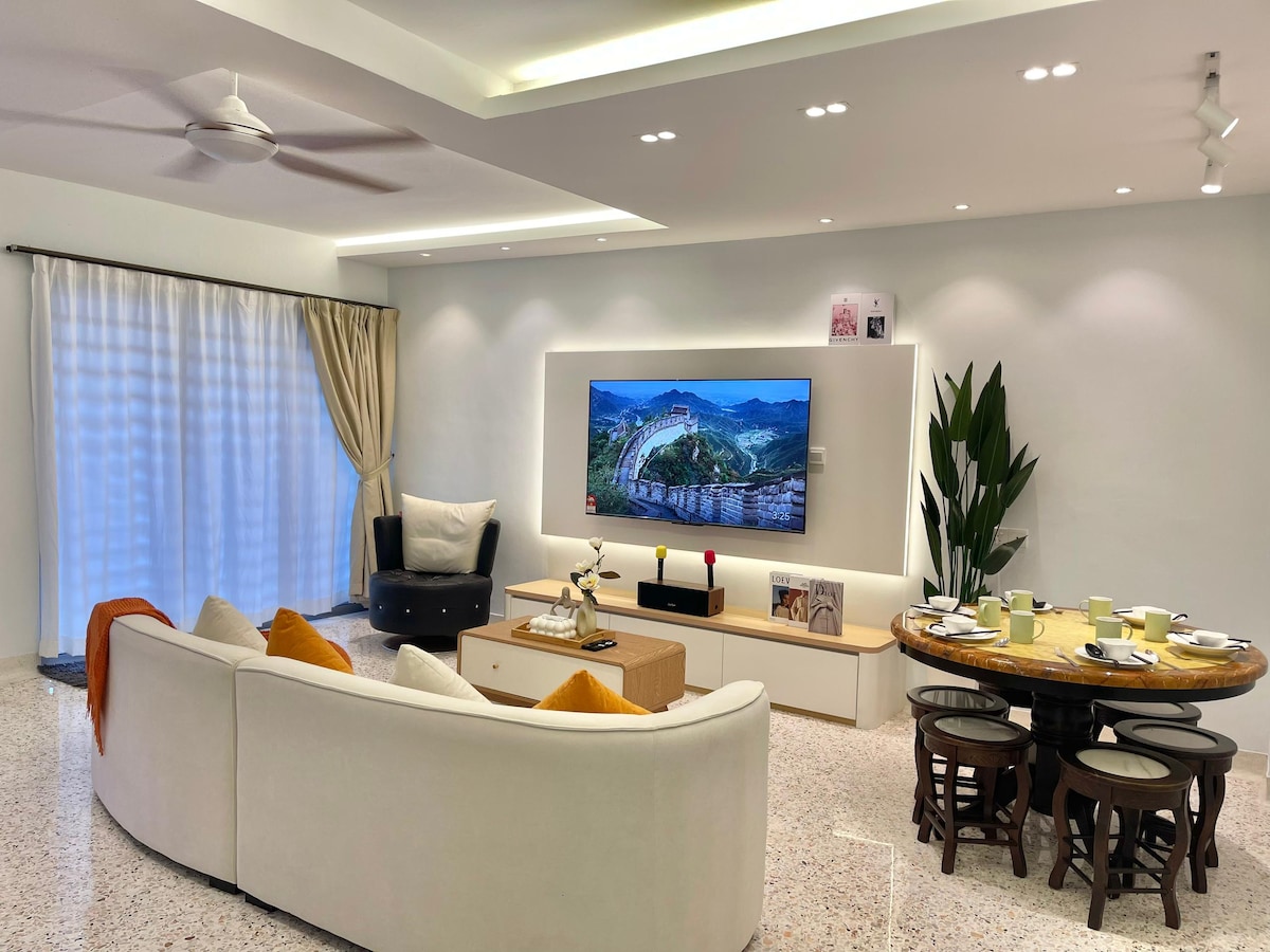 The Dan Garden -瑭苑 A newly furnished 6000+ sq. feet bungalow in the middle of Malacca. 15-20min from here to Jonker Gallery . In our location,guest won’t get sounds pollution form the car and traffic jam during peak season .Premium toilet and smart tv in every single room,Guests can relax in our garden and landscaping and enjoying the music that comes from the ceiling speakers in living room.We guarantee you will love this place because of the flamboyant ambiance,comfy beds,and of course the outdoors space. Room 1 & Room 4 -super single bed x 2 -queen size bed x 1 -bathroom (shampoo & towel included) -smart tv (strong connection) -hair dryer -cloth hanger -2.0 hp air conditioner Room 2 & Room 3 -king size bed x 1 -bathroom(shampoo & towel included) -smart tv (strong connection) -hair dryer -cloth hanger -1.5 hp air conditioner TV Room -55”Smart Tv (strong connection) -quality speakers -sofa beds Kitchen -plates&cups&spoon&fork (for 12 guests use) -cooking tools -coway water machine -Bar tender -fridge -washing machine Living Room -dining table -2.5 & 3.0 hp cassettes air conditioner -majong table Others: Car porch (for 3cars) Garden view courtyard x 2 modems x 2 Prohibition -No smoking indoor -No pets allowed -No outside activities after 11pm