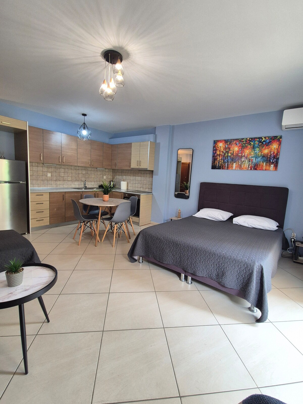 Ανεξάρτητο νεόδμητο διαμέρισμα 42 τ.μ. με έναν μεγάλο ενιαίο χώρο και ένα μπάνιο. Στον ενιαίο χώρο βρίσκεται 1 διπλό κρεβάτι και 2 καναπέδες οι οποίοι μπορούν να μετατραπούν σε 2 μονά ή ένα διπλό κρεβάτι. Στον ενιαίο χώρο βρίσκεται επίσης καθιστικό, κουζίνα και τραπεζαρία. Μπορεί να φιλοξενήσει έως 4 άτομα και είναι ιδανικό για μία οικογένεια.