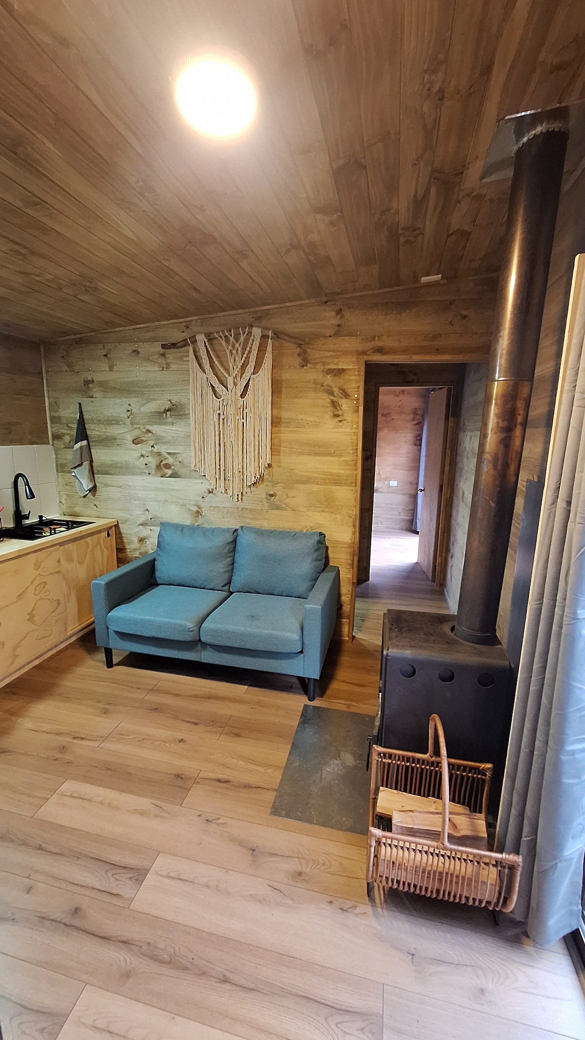 Sencilla y jovial tiny house para 3 personas (equipada con todo lo básico) en tranquilo lugar, ubicado a 17 km de Curacautín, cercano a diversos atractivos como Parque Nacional Conguillío, Laguna Negra, Salto del Captren, Termas Río Blanco, entre otros. Hay una escalera casi vertical para acceder a la habitación (peligroso para niños pequeños e incómodo para personas con movilidad reducida) Los 250 mts antes de la tiny house no son aptos para vehículos muy muy bajos.