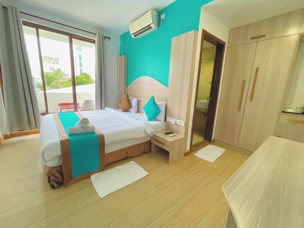 Prostorna soba s pogledom na morje, ki se nahaja 10 min od mednarodnega letališča Male/Velana. Nahaja se tik pred plažo Hulhumale. Soba je prostorna, popolnoma opremljena in ima balkon s pogledom na plažo. Ne morete se približati zvoku valov :) Do trgovin in restavracij se lahko sprehodite peš. Moško središče mesta in njegove znamenitosti so oddaljeni 10 minut vožnje s taksijem (ribja tržnica, sultanski park, stara petkova mošeja, predsedniška pisarna