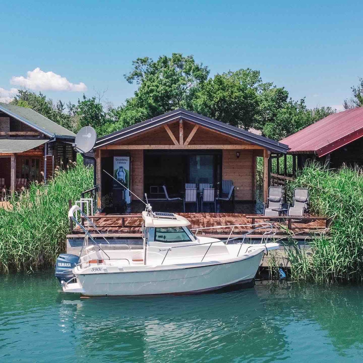 Koča ob reki na otoku Ada Bojana