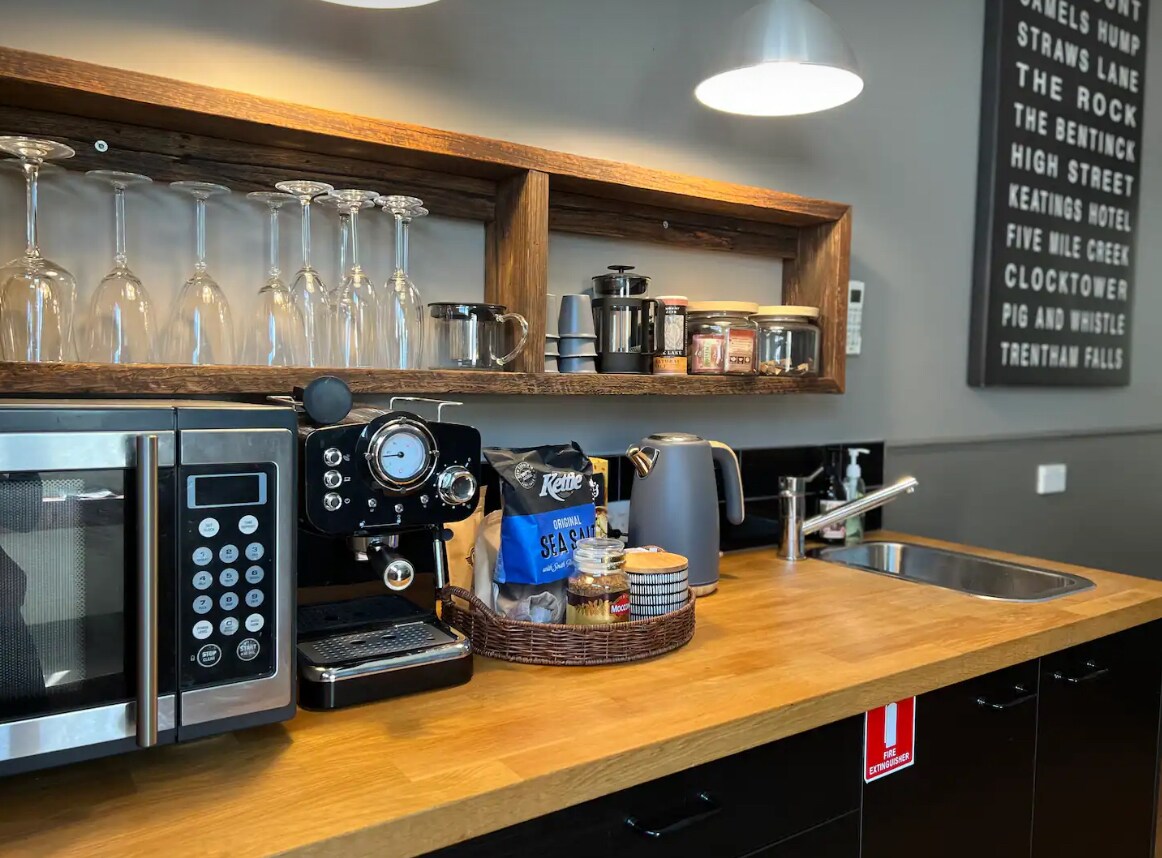 School House was built in Lauriston in the 1860's and was later transported to central Kyneton. Honouring the original character and charm, it has been beautifully restored and is surrounded by your own private garden, veranda, BBQ and entertainment area. School House has private entry. Studio-style with one large room consisting of a queen bed, single sofa-bed, lounge and modern kitchen and bathroom. School House has everything you need for a comfortable and convenient stay.