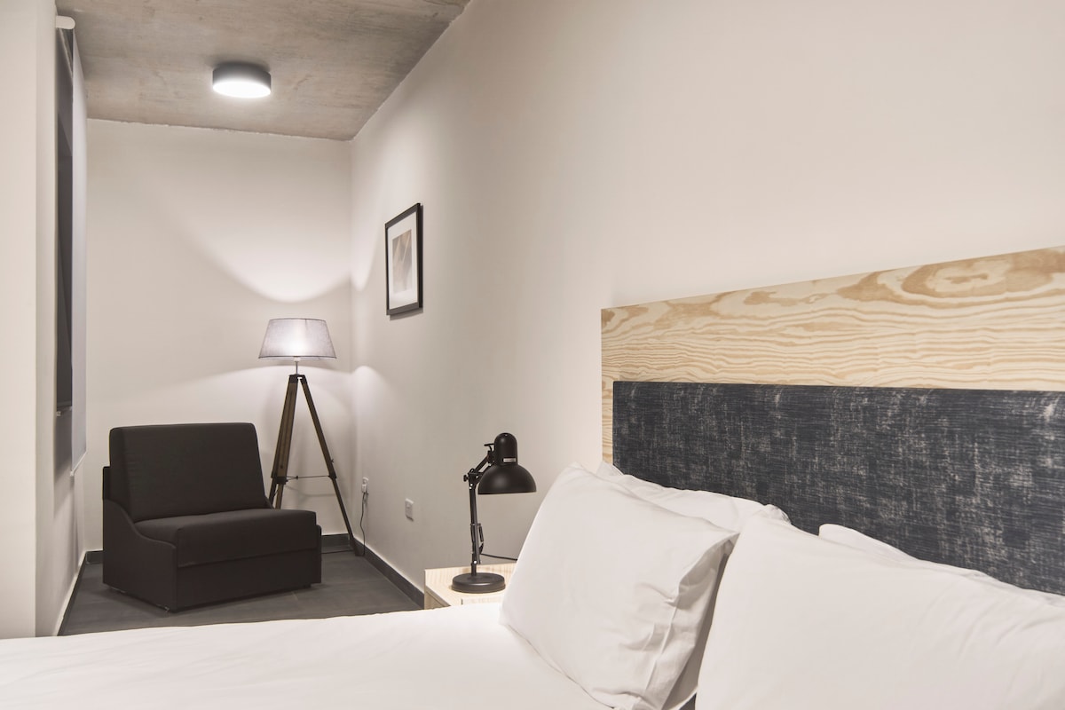 Uživajte v naši elegantni veliki zasebni sobi v 2. nadstropju z oknom s pogledom na ulico, ki je zasnovana v toplih bež tonih in prilagojena potrebam zasebnih in poslovnih popotnikov. Soba ima veliko kopalnico s terasastimi ploščicami in prho s kadjo in dežno prho, ki je na voljo v zakonskih posteljah z zakonsko posteljo ali z enojnima posteljama. Maria Rosa Suites sprejema otroke, stare 10 let ali več. Hišni ljubljenčki do 16 kg so dovoljeni po ceni 20 € na sobo na bivanje.