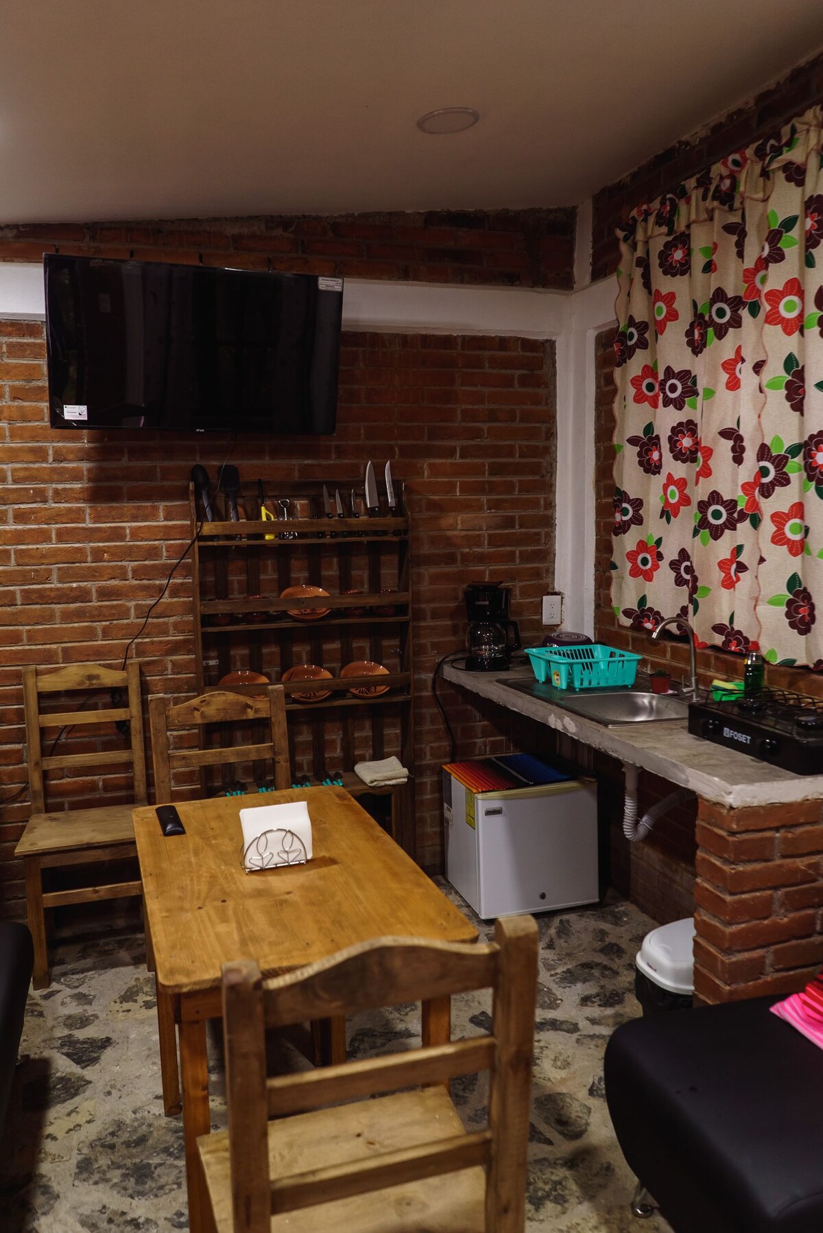 CREA RECUERDOS INOLVIDABLES EN ESTE ALOJAMIENTO ÚNICO Y FAMILIAR. Encantador departamento de piedra, te ofrece una vista impresionante de la vegetación de la SIERRA DE NOGALES, VER. La construcción le da un toque rústico y natural, que se integra perfectamente con el entorno. El interior es acogedor y cálido, detalles que invitan a relajarse en las , con la comodidad de su dormitorio y sala de estar, tiene bella vista desde sus ventanales cuenta con servicio de restaurante sábado y domingo