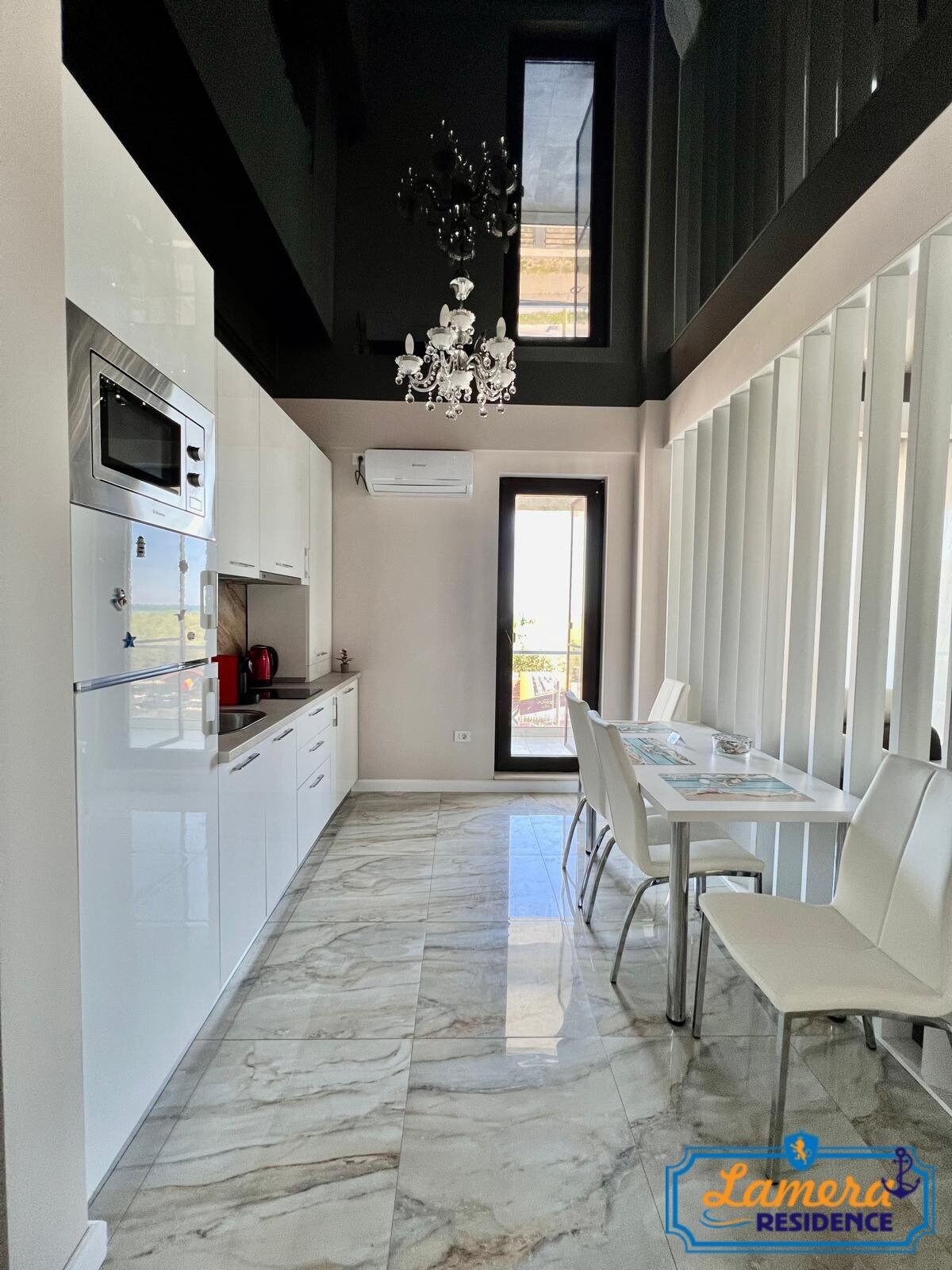 Vă prezint GG Mamaia – un studio deosebit, aflat în inima stațiunii și care oferă o panoramă impresionantă asupra mării și lacului. Locuința modernă și elegantă se află la câțiva pași de plajă și la aproximativ 10 minute de mers pe jos de cele mai exclusiviste cluburi, precum Nuba, Fratelli, Loft. Poziția excelentă face ca totul să fie ușor accesibil, astfel încât planificarea vizitei tale devine simplă și plăcută. GG Mamaia este locul ideal pentru un sejur relaxant și confortabil.