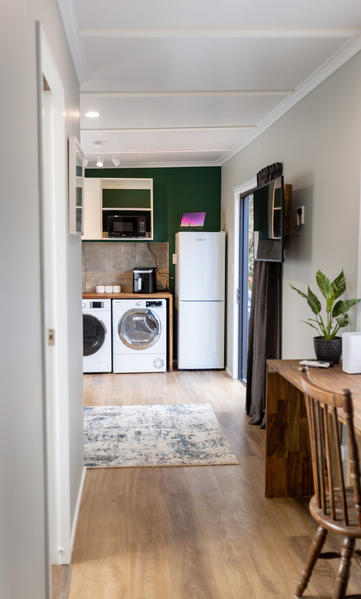 This beautiful two bedroom guesthouse provides a full kitchen, dining, lounge, work nook, bathroom with separate toilet, and full laundry facilities. Located directly across the road from Manfeild entrance and Kowhai Park, walking distance to the heart of Feilding, and only 15 minutes drive to Palmerston North makes this guesthouse a great choice for those looking to attend a Manfeild event, business meetings, visiting friends or family in the area or simply having a trip away.