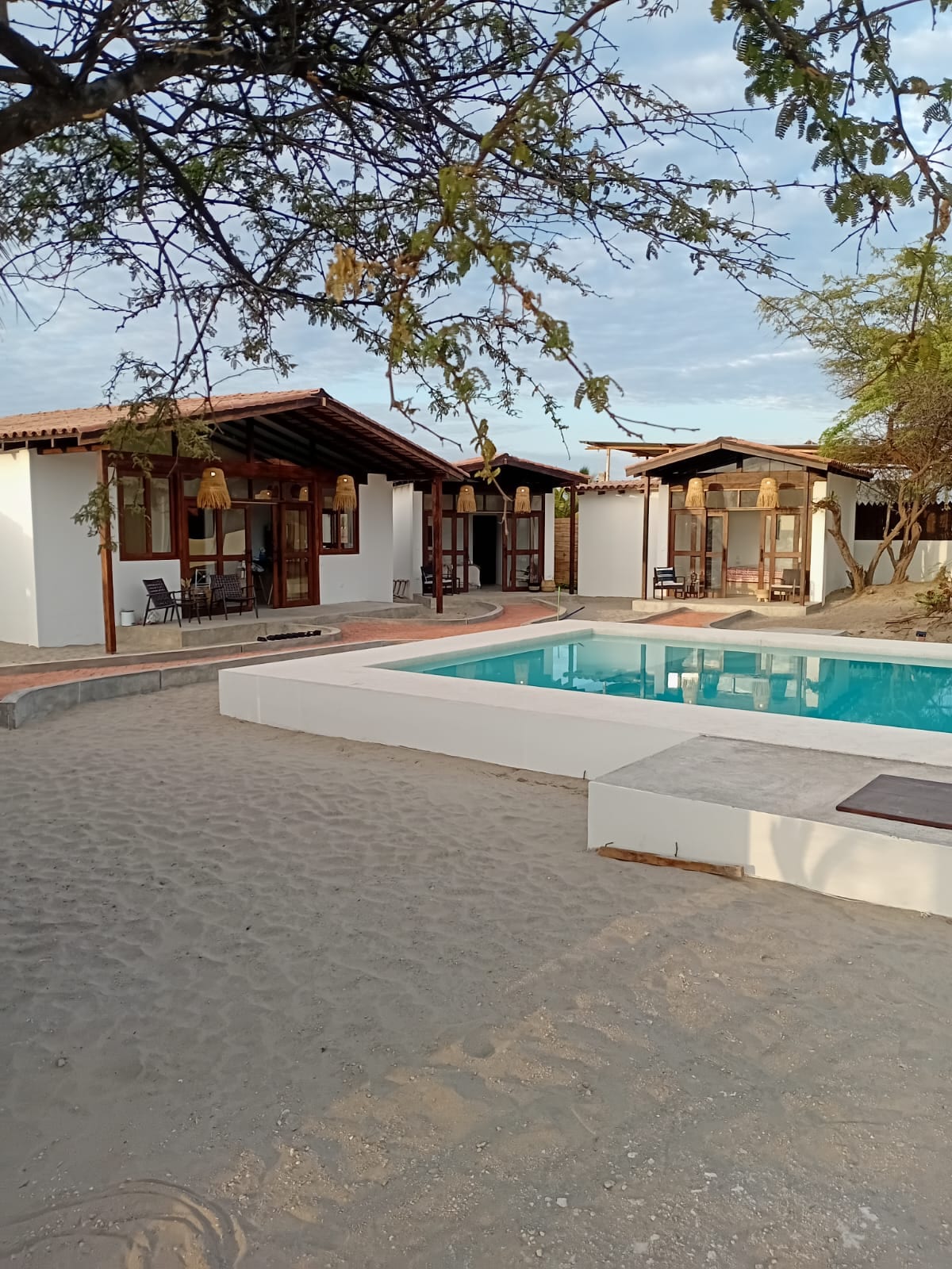 Ubicados en segunda fila en Las zona de Las Pocitas, Mancora, contamos con una salida privada a la playa a 300 metros de distancia de la entrada de la propiedad. Diseñada para brindar a los huespedes una experiencia de conexión con la naturaleza de la zona. Con espacios abiertos que te harán sentir la libertad y el silencio, donde la naturaleza y la calma se fusionan. Somos Pet Friendly y en la propiedad vive una gatita llamada tigrita.