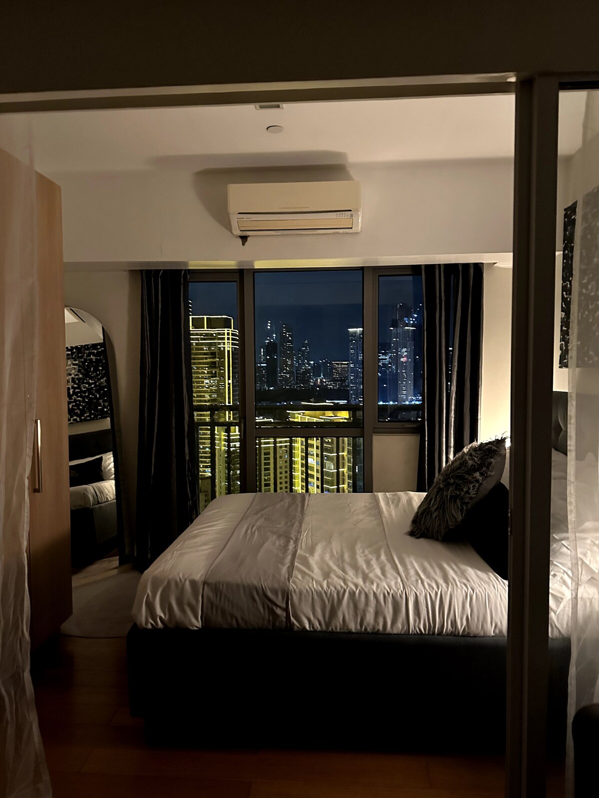 Bivajte v našem elegantnem 28 m2 velikem stanovanju Instragrammabble v 39. nadstropju, ki ponuja osupljiv razgled na mesto. Eleganten prostor se ponaša s sodobnim dekorjem, udobno posteljo, popolnoma opremljeno kuhinjo in 60-palčno pametno televizijo z Netflixom in YouTube premium. Uživajte v živahnem vzdušju in zajemite čudovite trenutke z visokega zornega kota. Idealno za kratkotrajna in daljša bivanja. Rezervirajte zdaj za nepozabno doživetje.