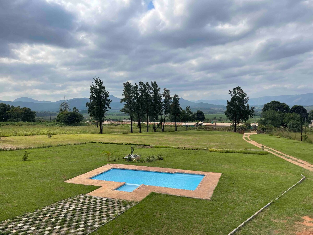 Pozabite na skrbi v tem prostornem in mirnem prostoru. Odličen razgled na naravo in gore v dolini Malkerns. Najboljša lokacija je 5 km od prizorišča Bushfire, ki je slavni in najbolj znani multikulturni glasbeni in umetniški festival v Afriki.