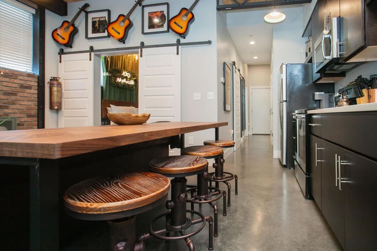 This professionally designed studio is minutes from Nashville’s top venues and just 2 miles from the Broadway - perfect for concert nights and couples’ getaways. Guests often say this is one of the cleanest stays they’ve experienced. Enjoy reserved parking, easy self check-in, a fully stocked coffee station, high-end finishes, a spacious walk-in shower, and a comfortable home base close to it all.
