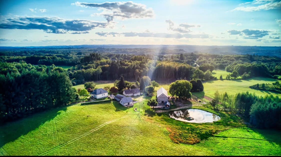 hameau privé de 34 ha sans aucun vis à vis et proche commerces où vous pourrez observer à toute heure la faune sauvage Oie , poule, lapin ⚠️ étang de 1000 m2 non clôturé Four à pain , terrain de pétanque Randonneur/pêcheur/amoureux de la nature et chasseur ce gîte et pour vous Parc à dispositions int/ext pour les chiens Jérôme est sculpteur de champignon en bois Option Ménage 50e bain nordique 30e par nuit départ ou d’arrivée différé 15€ Un segond logement à côté jusqu’au 15 au total