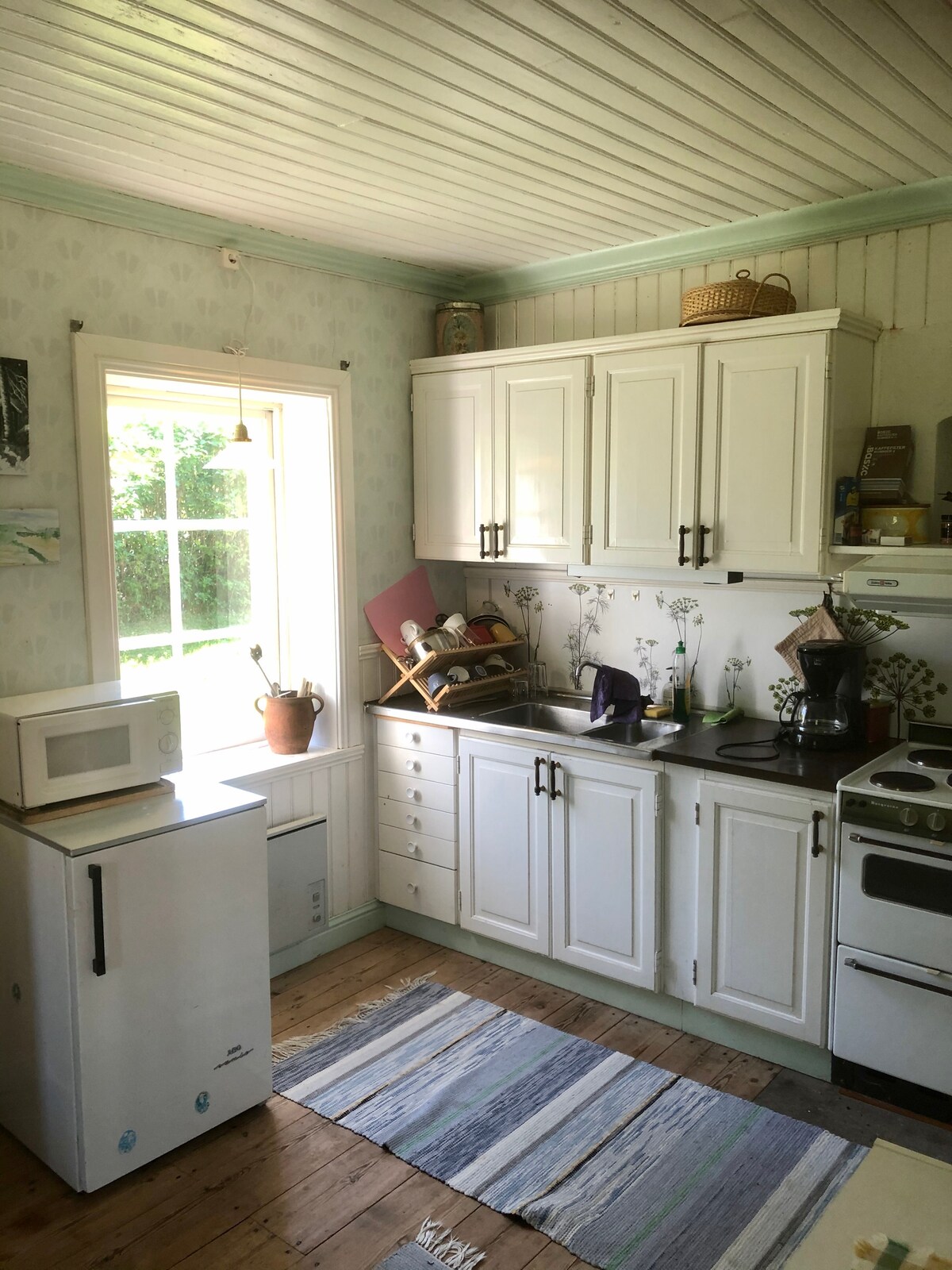 Remote cottage close to water with sun all day. 15 sqm plus an outhouse. Terrace, dock, and boat contribute to a cozy outdoor environment. A very nice location to experience Bergslagen. Parking available, bus communication 4km away. Kitchen, outdoor sink, outdoor shower, three beds (sleeps 4), outhouse. The tenant is responsible for cleaning on the day of departure. Bed linen + towels are to be brought by the guest. If you do not want to clean, we charge a fee of 500 SEK.