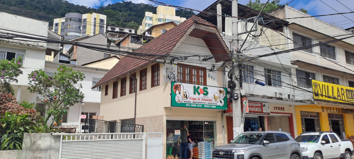 Excelente casa no centro de Domingos Martins. Perfeita para famílias com crianças. Amplo quintal, garagem coberta, cozinha, área de churrasqueira, ducha externa, 3 quartos sendo duas suítes com cama de casal e outro com uma cama de casal, banheiro social, lavanderia completa. Na sala há a possibilidade de utilizar sofá-cama (2 lugares). Não inclui roupa de cama e de banho. Brinquedos para crianças disponíveis. É permitido presença de animais e possui espaço totalmente cercado.