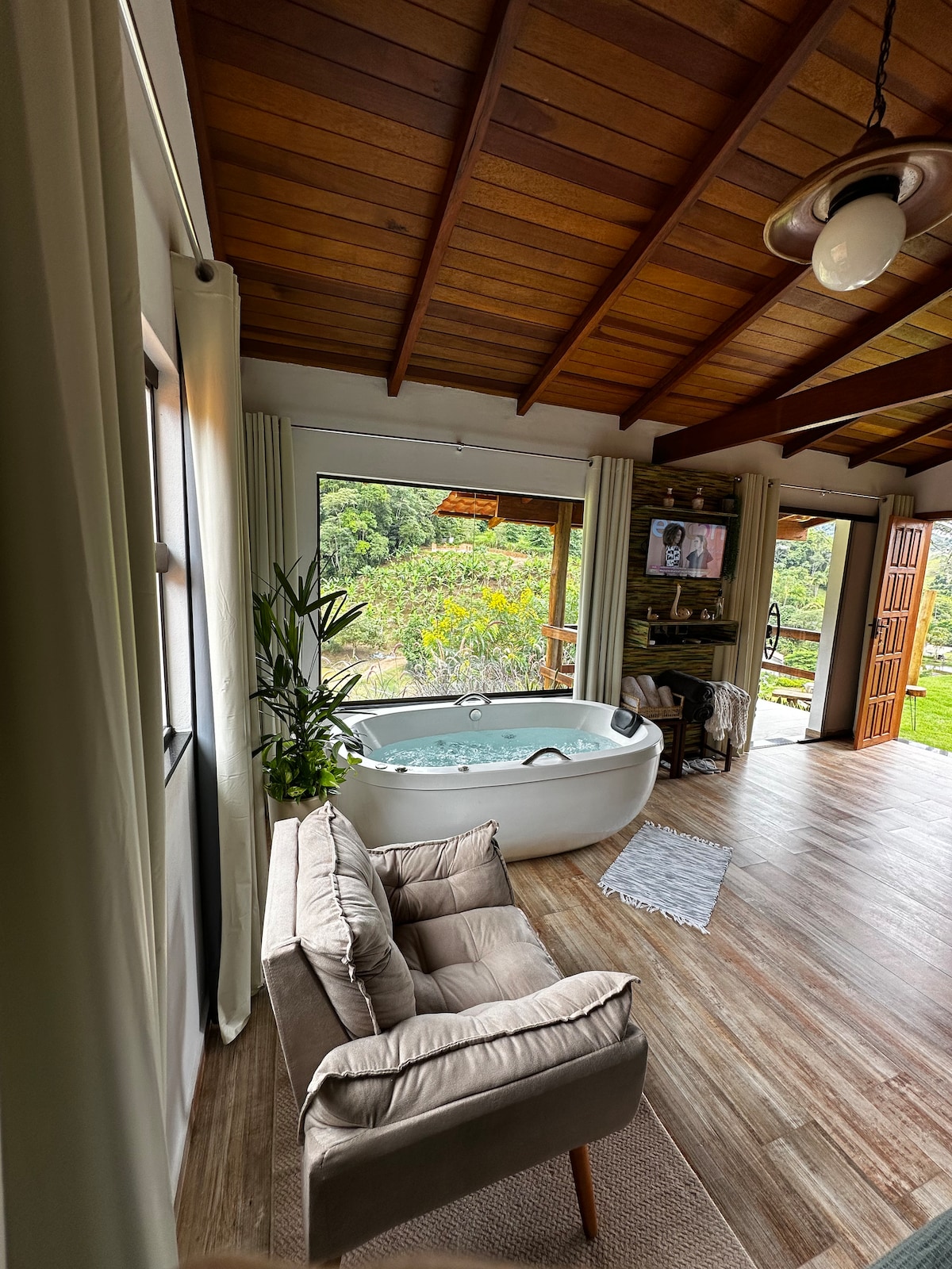 Le 6 km od središča Domingos Martins, v Circuito do Chapéu, je bil naš prostor zasnovan z naklonjenostjo, da nudi udobje in zasebnost sredi narave. Ne glede na to, ali gre za romantičen konec tedna, osvežujoč oddih ali počitek s tistimi, ki jih imate radi. Ob prihodu vas bo pozdravilo prijetno okolje, kjer se udobje pridruži naravi, da ustvarite edinstveno doživetje. Na poti so odlične restavracije, od državnega parka Pedra Azul pa smo oddaljeni 45 km.