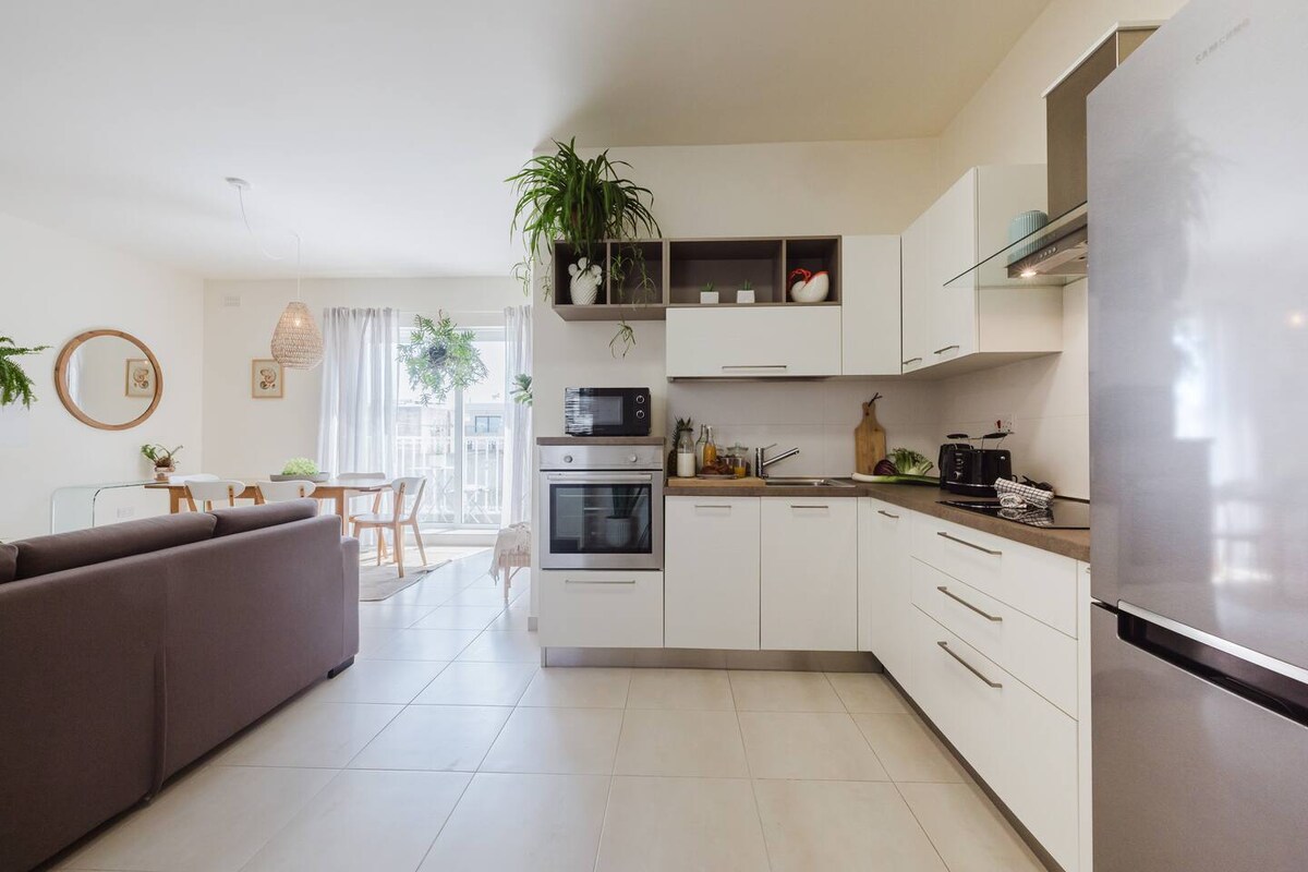 Čudovito, prostorno, družinsko in poslovno stanovanje s postrežbo s pogledom v najbolj iskani stanovanjski soseski Mellieha. Stanovanje je v celoti klimatizirano in ima 2/3-sedežni zasebni masažni bazen na svoji terasi. Gostje imajo dostop tudi do popolnoma opremljene telovadnice v isti stavbi. Stanovanje je 15 minut hoje oddaljeno od največje peščene plaže na Malti (2 minuti vožnje z avtomobilom) in razmeroma blizu vse opreme, vključno s supermarketi, trgovinami, frizerji itd.