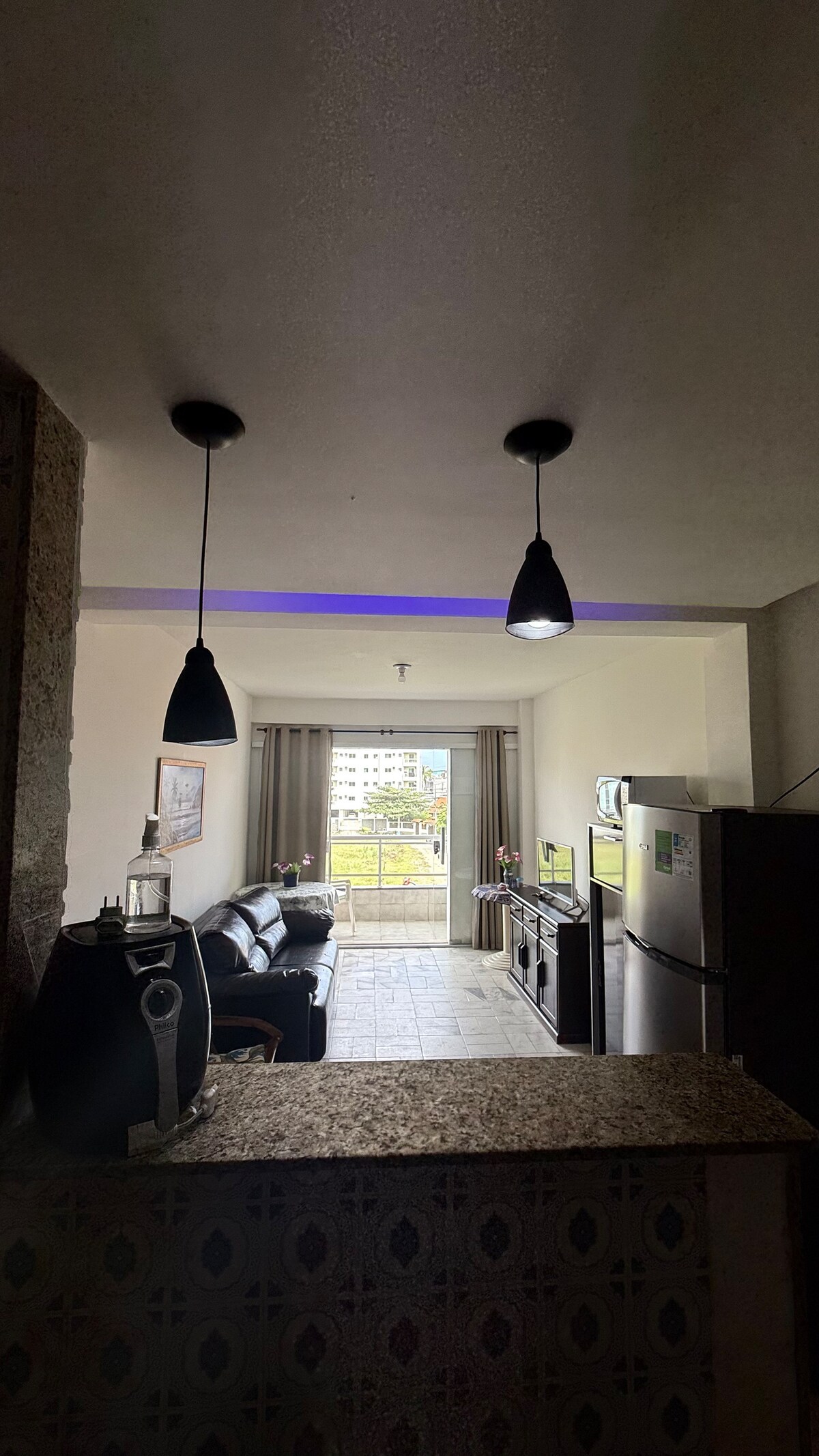 Sobre o imóvel: - Studio com 25m²; - De 12 a 15 minutos caminhando até à praia; - Garagem privativa; - Acomoda confortavelmente até 3 pessoas; - Varanda espaçosa. Destaques: - Wi-fi de alta velocidade; - Ar condicionado e ventilador de teto para seu conforto; - Smart TV; - Cozinha equipada com cooktop por indução duas bocas, forno elétrico, microondas, air fryer, sanduicheira, cafeteira dolce gusto, cafeteira elétrica e liquidificador.