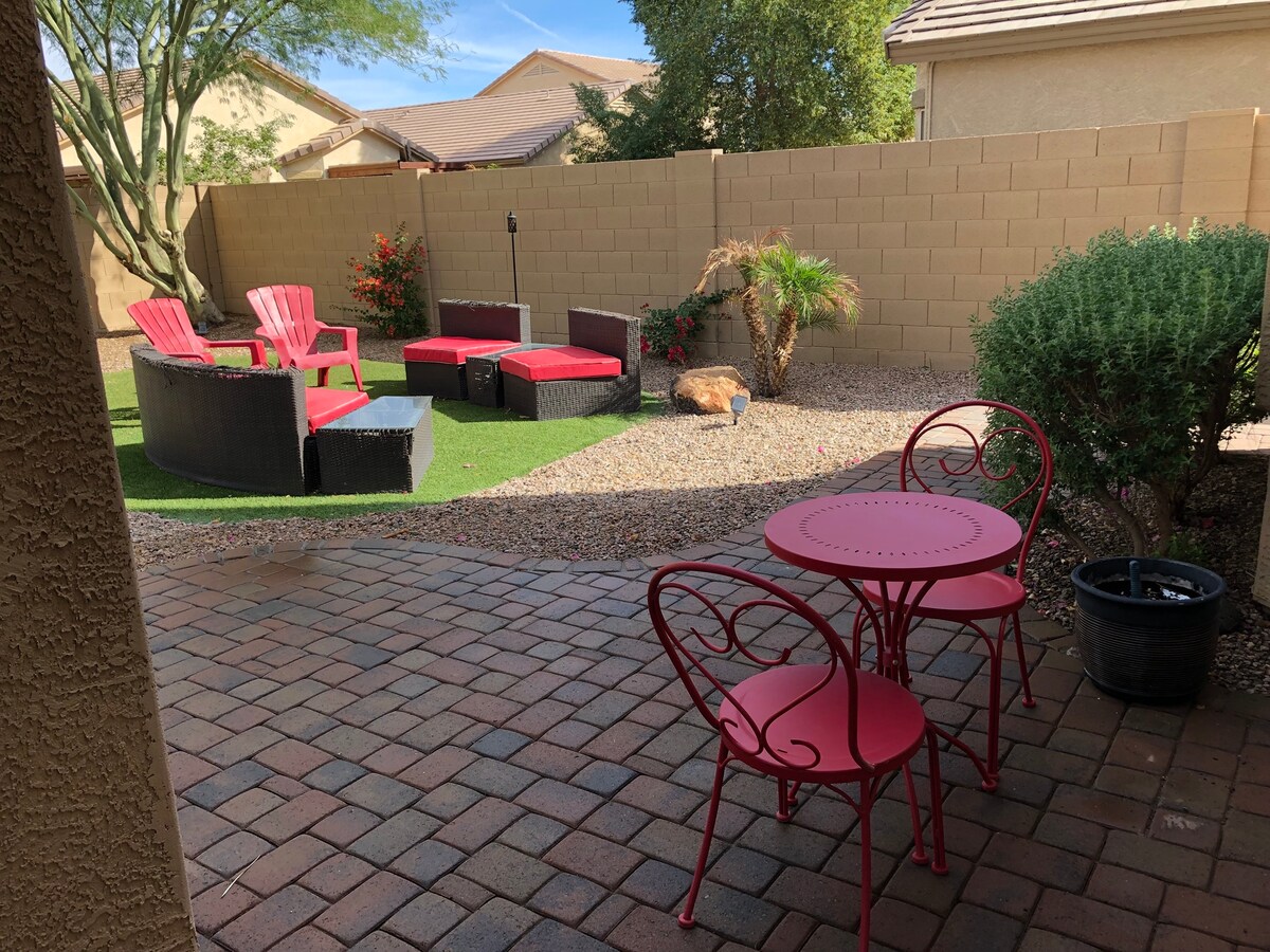 Uživajte v elegantnem prenočišču z masažno kadjo v središču mesta. Chandler je idealen kraj za bivanje. Le 10 minut od središča Chandlerja, 15 minut od Scottsdale/Gilbert/Tempe/asu in 20 minut od letališča Phoenix in Sky Harbor. Prenovljeno prenočišče bo poskrbelo za pravi počitniški občutek. To prenočišče se nahaja v slepi ulici za popolno zasebnost. Ponujamo čudovito in odprto teraso za odličen počitniški kraj! Na podlagi nedavnih mnenj smo dodali tudi popolnoma novo vzmetnico velikosti King.