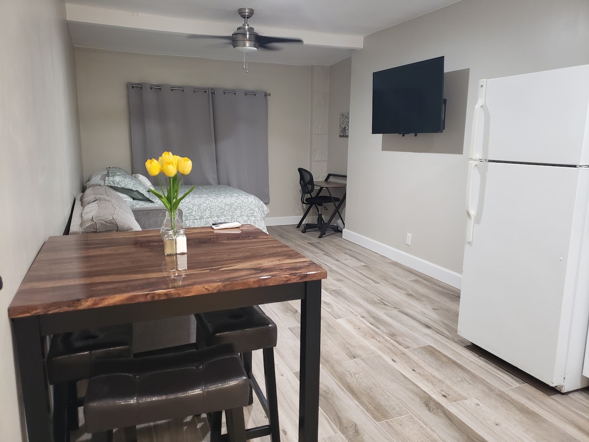 Sodobna industrijska zasnovana garsonjera z zapečatenimi cementnimi tlemi in izpostavljenimi cevmi. Sivi vodovodni sistem draži bujne jugozahodne vrtove. Bodite pustolovski in izberite zunanjo prho v zaprti zadnji terasi, da boste v celoti cenili toplo vreme. Skriva se v zgodovinski soseski F.Q. Story v središču Phoenixa. Medtem ko se sprehajate po soseski, vas obkrožajo očarljiva zgodovinska prenočišča. Blizu lokalnih restavracij, parkov in muzejev. V studiu B so dobrodošli VSI!