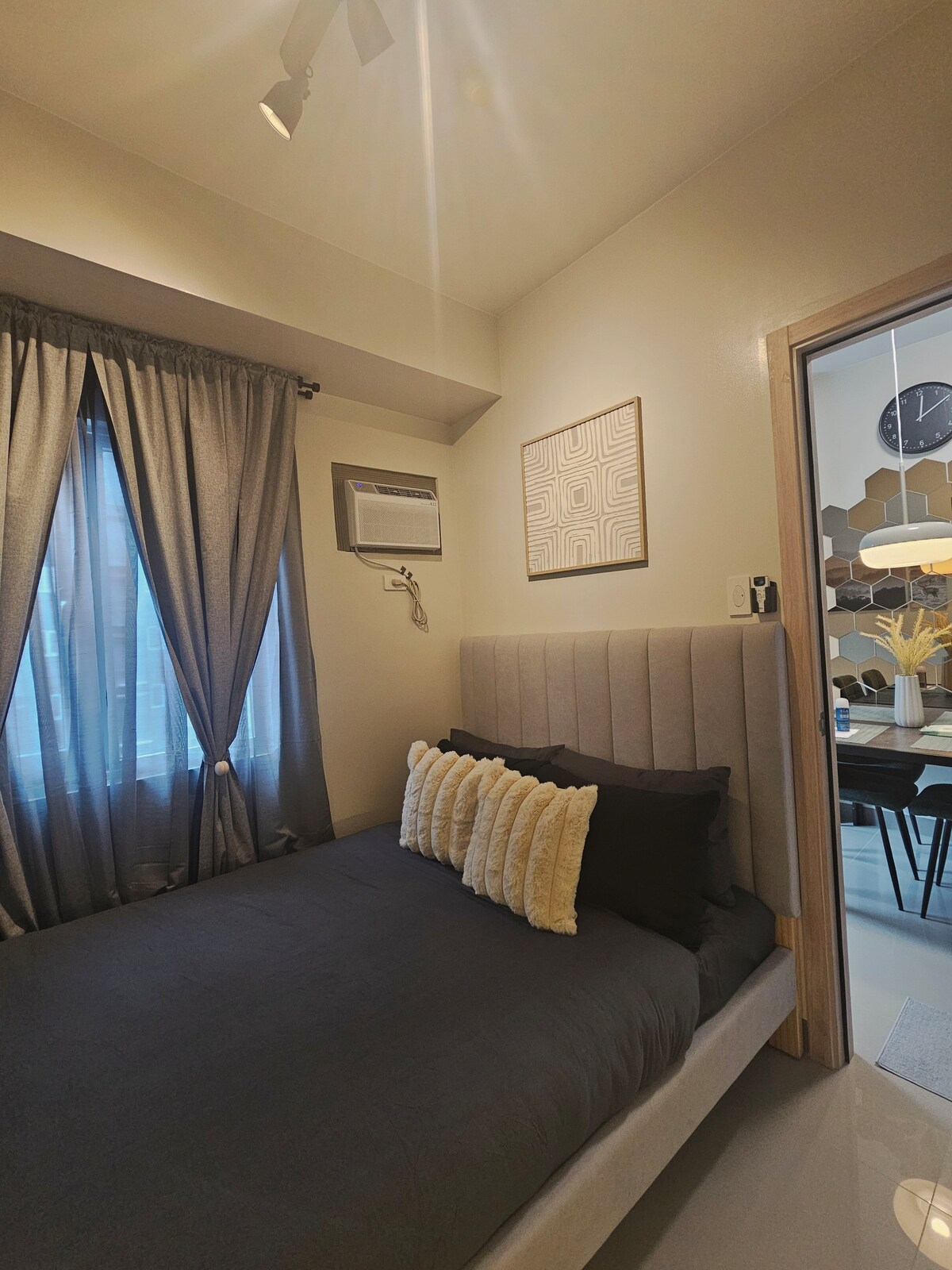 🌆 Alta Suites - Alta Prima 🚘 BREZPLAČNO NAMENSKO PARKIRANJE 📍 SMDC Charm Residences Felix Avenue Cainta, Rizal. Odkrijte osebne detajle, zaradi katerih se boste počutili kot častni gost v prenočišču dragega prijatelja. Naša soba za zabavo s črnimi stenami in žaluzijami na oknih ustvarja popolno okolje za filmske večere. Uživajte v Netflixu, HBO Go in Disney+ ali pa se udeležite strateškega obračuna z našo zbirko namiznih iger. Ni na voljo na vaše datume? Preverite naš drugi vnos 🌇 Alta Hernando. 🎥🍿