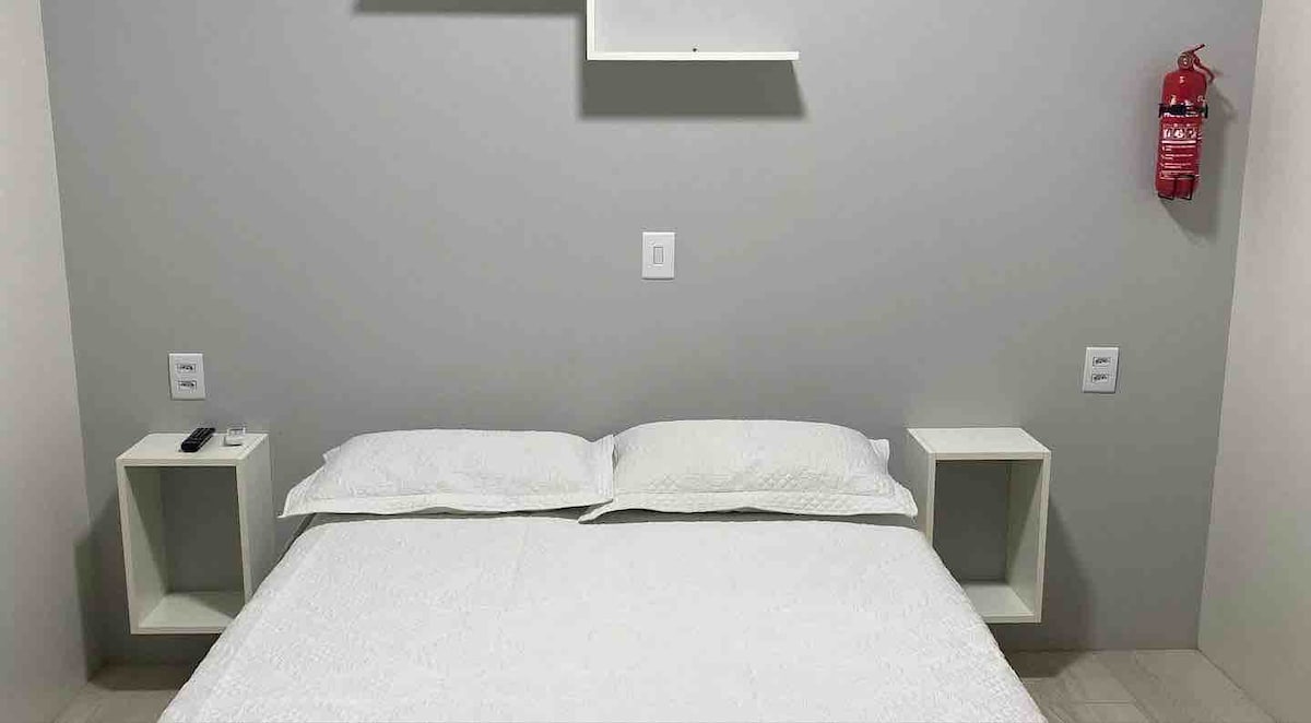 -Alugo kitnet 100 metrov od morja v Tramandaíju. -mobile, ki se nahaja v drugem nadstropju v bed and breakfastu. - Zasebna kopalnica v sklopu namestitve. - Kuhinja s štedilnikom, hladilnikom, mešalnikom in priborom za vaš obrok. - Wi-Fi zasebna lastnina, ne da bi jo delili s preostalim prenočiščem. -Tv in ventilator. -2 zakonski postelji (po potrebi nudimo 1 enojno vzmetnico). -1 avtomobilski prostor na zaprtem dvorišču. - Območje za žar in nabodala.