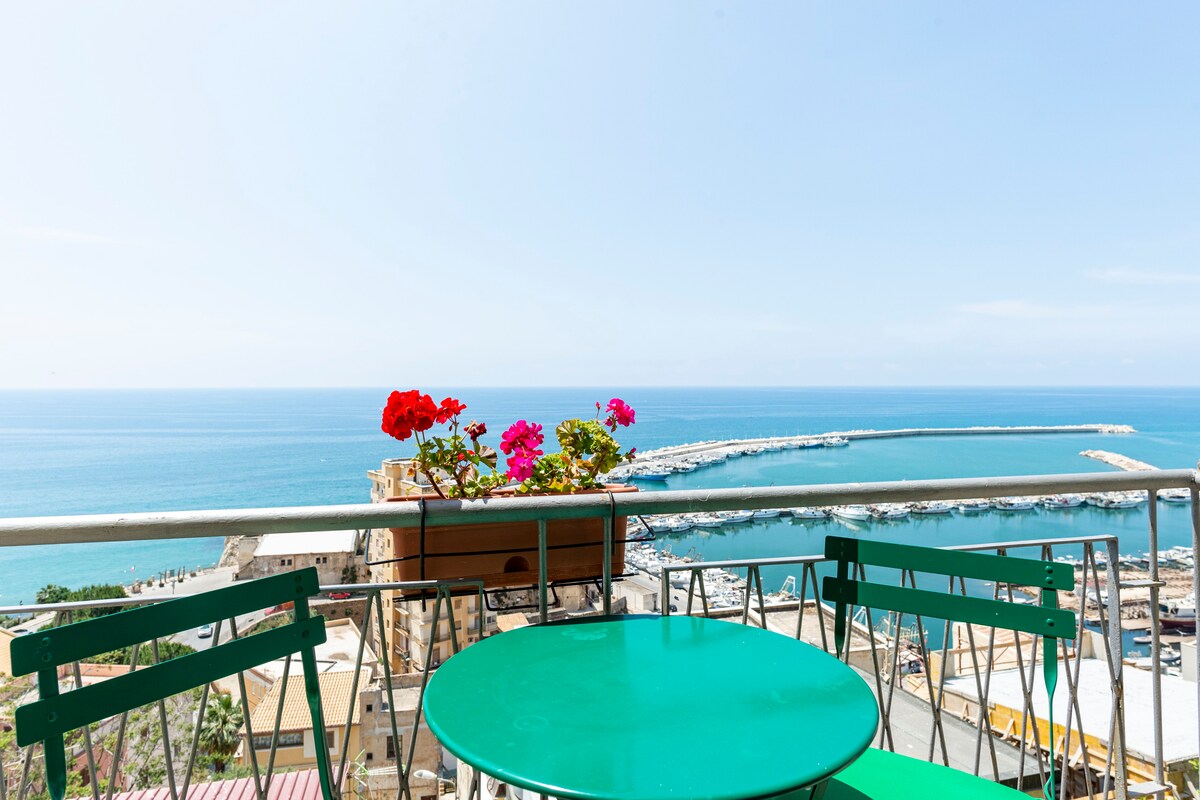 Accogliente appartamento con terrazza privata e vista panoramica sul porto Situato non troppo distante dal centro questo appartamento indipendente è il rifugio perfetto per un soggiorno rigenerante. Con una terrazza privata che offre una vista mozzafiato sul mare, avrai il privilegio di goderti tramonti indimenticabili. Ideale per coppie, famiglie o per chi desidera lavorare in smart working. Parcheggio gratuito a soli 150 metri, con la possibilità di parcheggiare direttamente sotto casa.