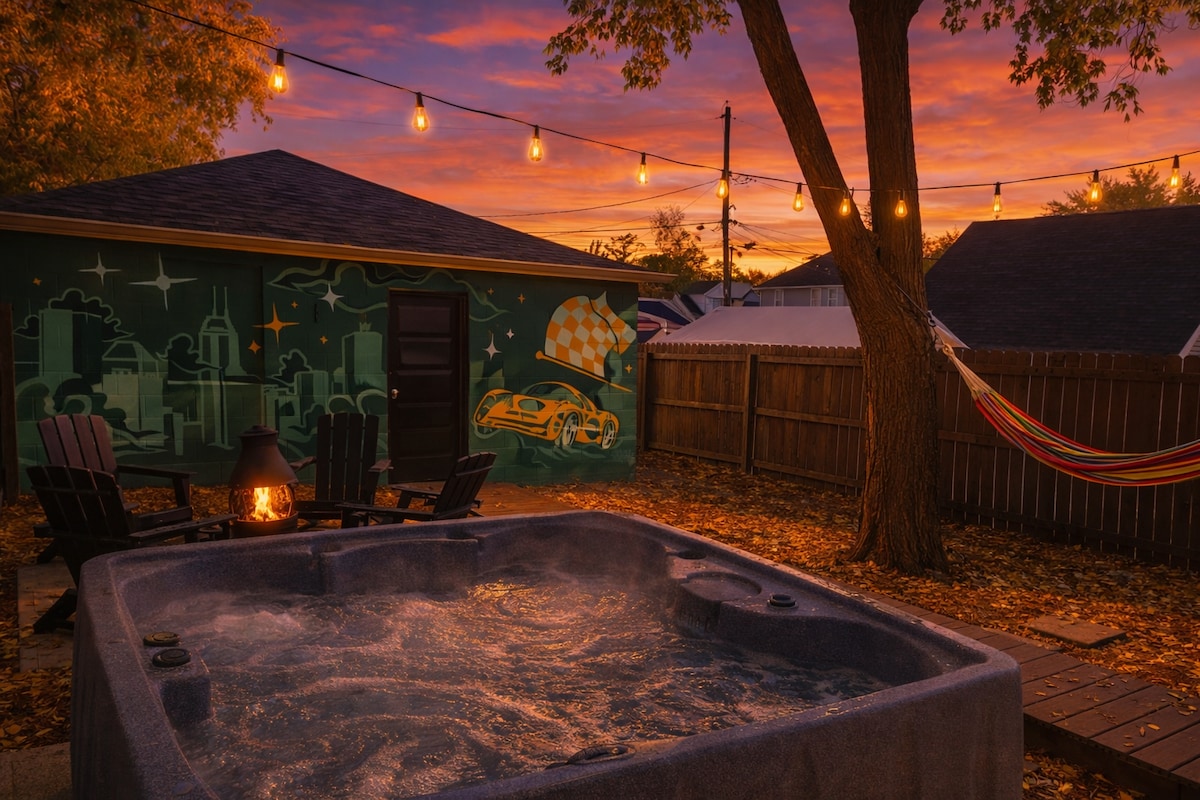 Dobrodošli v Bevillu v Bottleworks! Kino 📽️ 4K s prostorskim zvokom - kot nalašč za filmske večere ⛳️ Dvorišče z zelenico za zabavo 👙🩳 Kavbojski bazen + sončna terasa za sproščanje 🛁 Jacuzzi za sprostitev in počitek 🔥🪵 Ognjišče za prijetne noči pod zvezdami 🏓 Igralna cona: namizni nogomet, namizni tenis, zračni hokej in shuffleboard 🕹️ Igralnica: Pac-Man in NBA Jam 🍿 Pokovka + ☕️ kavni bar 📍 1 mi do Bottleworks ⛲️ 10 minut do Fountain Squarea 🏟️ 12 minut do naftnega stadiona Lucas 🏎️ 20 minut do avtoceste Indy Motor Speedway