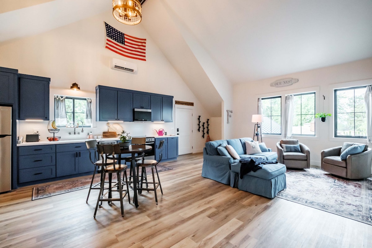 Brez odhoda in hišni ljubljenčki ostanejo brezplačni :) Čudovito edinstveno obrtno prenočišče na majhni površini ob robu mesta. Ta pritlična garsonjera za goste ima vso opremo mojih najljubših hotelov, kot so Hyatt, Westin in Marriott. Ta rustikalno sodoben prostor ima majhno kuhinjo, hladilnik, zamrzovalnik, filtrirano vodo, mikrovalovno pečico, kuhalno ploščo, opekač kruha in več aparatov za kavo. Jeleni so vsakodnevni obiskovalci, skupaj z različnimi divjimi pticami in številnimi drugimi prijaznimi živalmi.