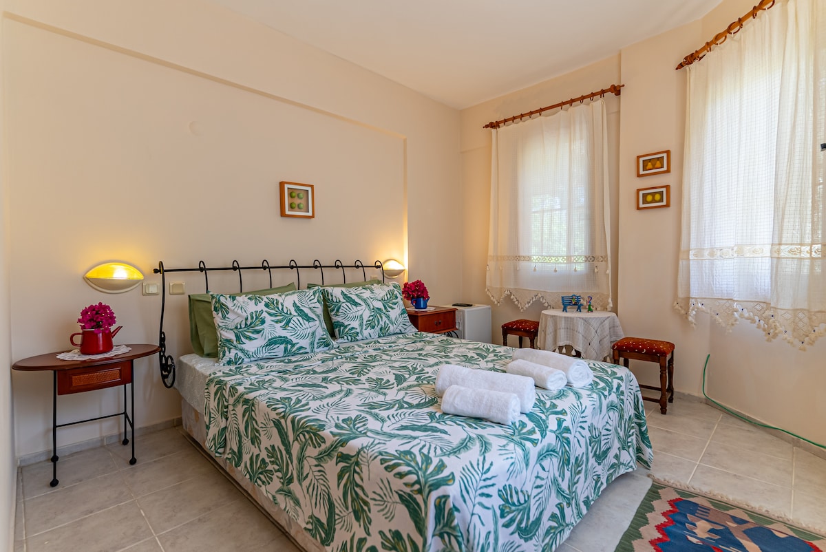 900 m do morja, stran od gneče, s pogledom na razgled, prostorno, koncept bed and breakfast, kakovostne nove materiale. Samo 2 zasebni sobi. Zdajle gledaš v sobo. Če ste družina prijateljev ali velika družina, lahko rezervirate tudi oljčno sobo, če je na voljo, in preživite počitnice brez kogar koli drugega. V drugi sobi (Olive Room) sta zakonska postelja in raztegljiv kavč. Cene vključujejo zajtrk za 2 osebi v sobi. Na žalost ne moremo sprejeti otrok, razen če sta dve sobi rezervirani skupaj.