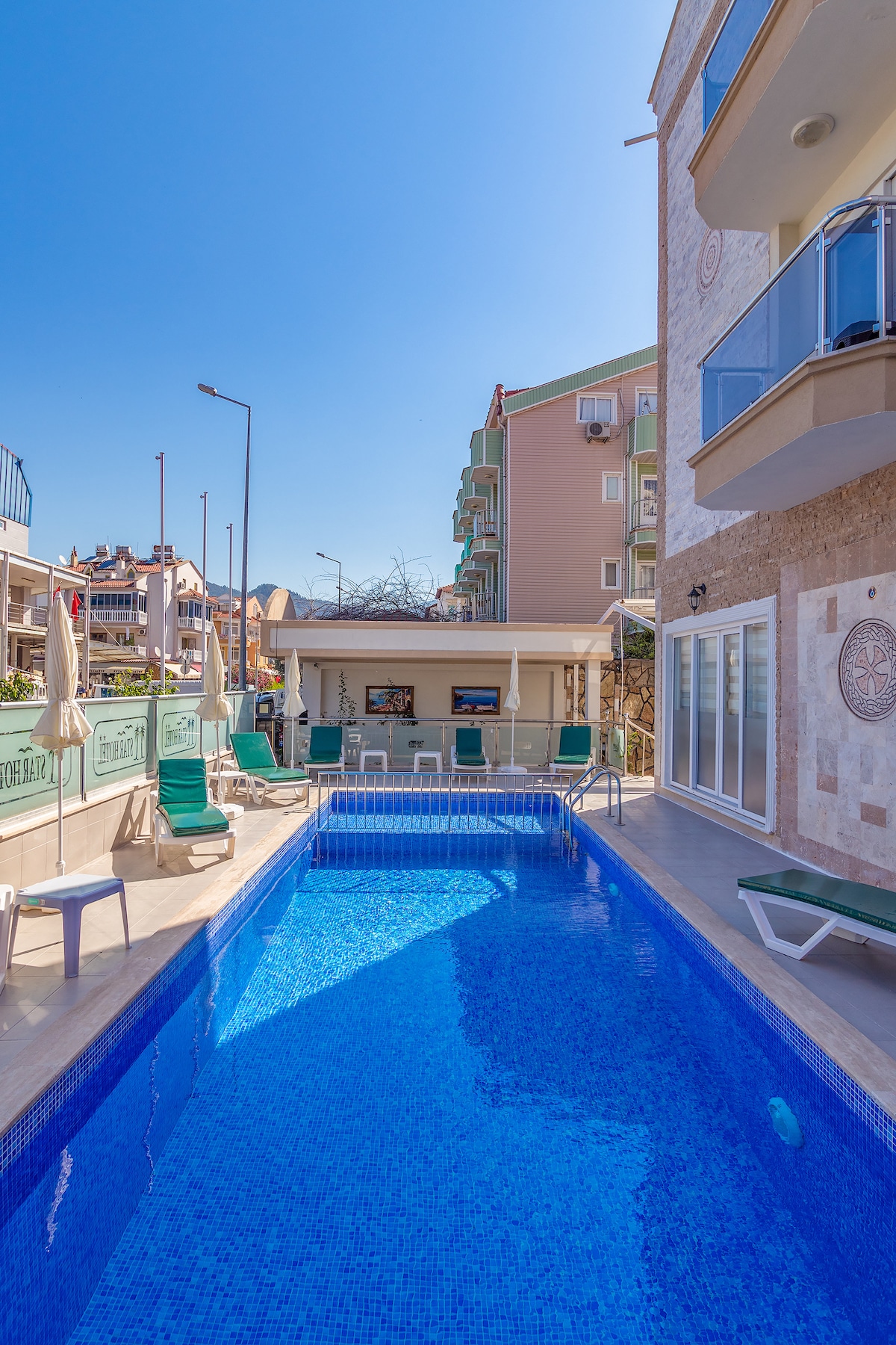 Marmaris’in en turistik bölgesinde, dağlarla ve denizin bütünleştiği muhteşem bir lokasyonda bulunan dairemize plaj, alışveriş ve toplu taşıma noktalarına sadece yürüme mesafesindedir. Ayrıca misafirlerimiz sahibi olduğumuz küçük otelimizde havuzun keyfini çıkarabilir, bar ve snack restarurantımızdan faydalanabilirler. Misafirlerimize 7/24 hizmet sunabilecek, herhangi bir problem veya talep karşısında yanlızca birkaç dakika içerisinde yardımcı olabilecek harika bir ekibe sahibiz.