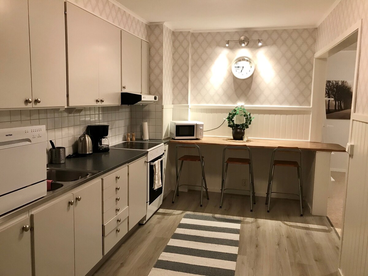 Dobrodošli v Bergsåkerju, ki je 10 min vožnje z avtomobilom do središča mesta Sundsvall. Avtobus redno vozi in se ustavi po cesti proti mestu izven mesta zunaj Mittuniversteteta. Tukaj živite v popolnoma prenovljeni kmečki hiši s kuhinjo, kopalnico in zakonsko posteljo. Če želite priti do nakupovalnega središča Birsta, je to le približno 10 minut vožnje z avtomobilom in ste tam. Posteljnina, brisače in čiščenje so vključeni v ceno. Brezplačno parkiranje na dvorišču.
