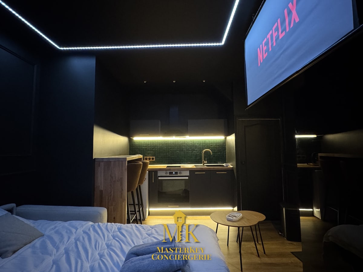 Doživite doživetje v tej prostorni in edinstveni nastanitvi s pk v osrčju gore Reims, 10 minut od središča mesta in 10 minut od Epernaya , 5 minut od avtocestnega izvoza. Z Bluetoothom lahko uživate v masažni kadi in dvojni prhi. Uživajte tudi v številnih filmih na platformi Netflix, ki so prikazani na ogromnem zaslonu s kinom , da ne omenjamo številnih degustacij šampanjca 🍾 pri sosednjih vinarjih ali na kraju samem🥂 Za vsa povpraševanja 06/ 62/ 80/ 61/ 60