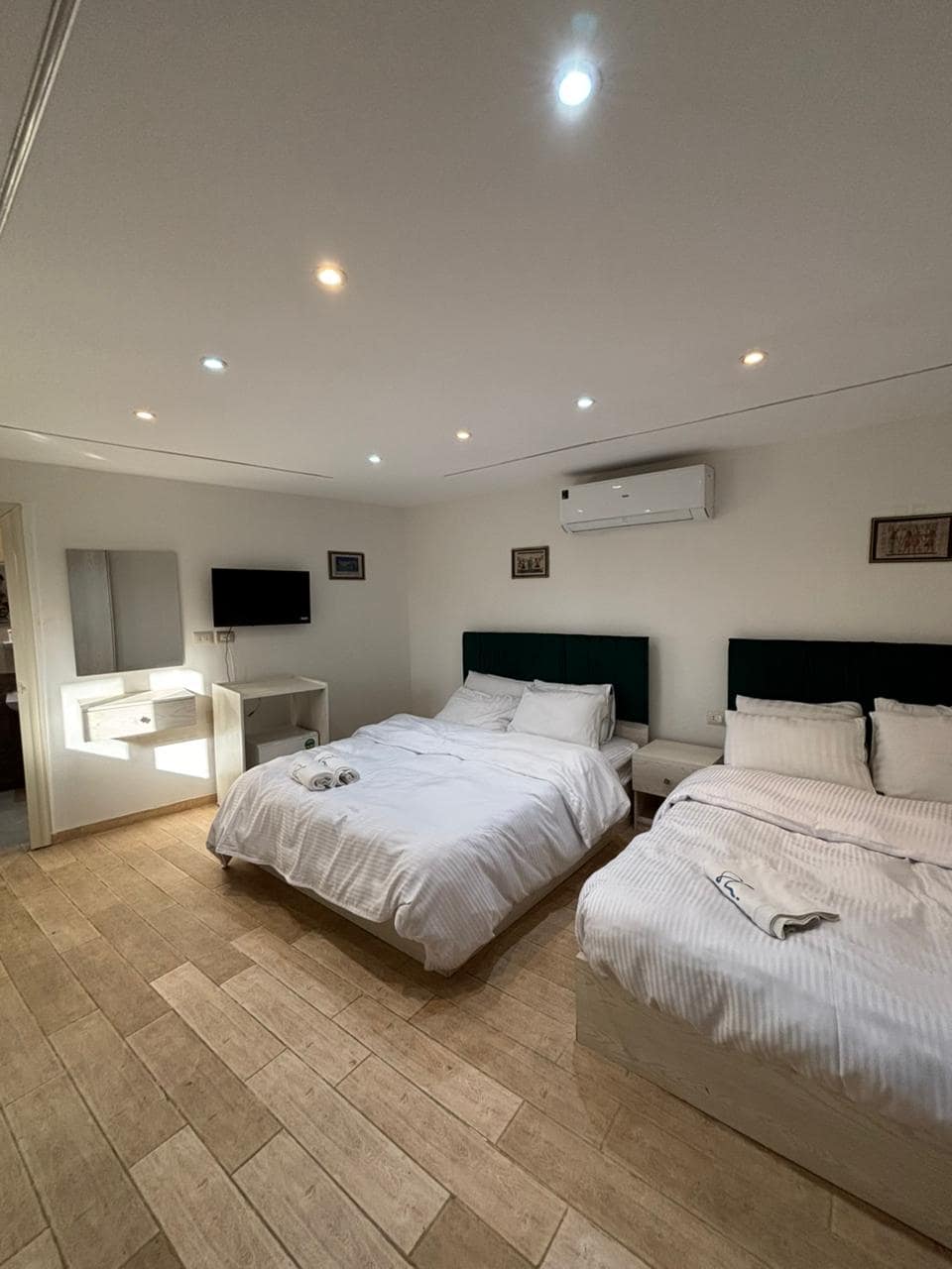 Doživite čar Kaira v slogu. Naša butična dvoposteljna soba ponuja popolno mešanico udobja in elegance — idealna za poslovne popotnike in popotnike v prostem času. Uživajte v bivanju v čudovito oblikovanem prostoru z zasebno kopalnico, 55-palčno pametno televizijo, klimatsko napravo, mini barom, Nespresso aparatom in čajnikom. Nahaja se v osrčju središča Kaira, le nekaj korakov stran od najbolj živahnih restavracij, kulturnih znamenitosti in znamenitosti v mestu