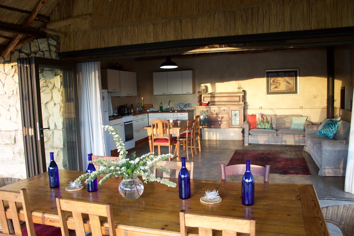 Sprostite se z vso družino v tem mirnem prenočišču na delovni kmetiji @ Umpukane. Enota ima prostorno glavno spalnico z dodatno enojno posteljo. Dnevni prostor je odprt načrt s pogledom na vrt z enodnevno posteljo. Druga soba ima 2 enojni postelji z drsnimi vrati na vrt. Gostje lahko raziskujejo kmetijo peš, s kolesom ali avtomobilom. Na jezu Kloof lahko uživajo v osvežujočem plavanju, ki je od enote oddaljen približno 2 km. Prav tako lahko poskusite ujeti in sprostiti nekaj basov. Uživajte v čudovitih sončnih zahodih in sončnih zahodih.