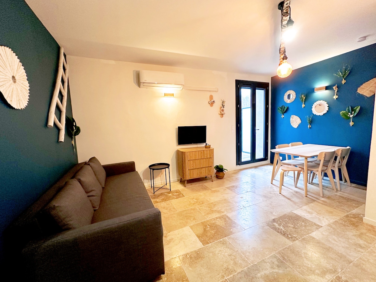 Nichée dans les ruelles pleines de charme de Marseillan, cette adorable maisonnette vous propose au rdc une cuisine dinatoire, à l’étage, un salon avec canapé convertible et au dernier niveau, une chambre avec un lit de 160 et sa salle de douche. Soigneusement décorée, cette petite maison est parfaite pour les couples en quête de calme et de proximité avec la mer. Marseillan vous séduira par son port bordé de terrasses, ses ruelles colorées, son marché et ses nombreuses animations estivales.