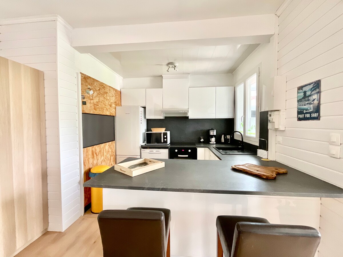 Hiša na zasebni gozdnati posesti Dostop do bazena 10X5 (glejte z lastnikom) T2: 25 m2; -1 nastanitev za spanje (160X200) SD prha, opremljena kuhinja z WC-jem - zasebna terasa: električni in/ali leseni žar (dogovor z lastnikom) 2 minuti hoje od vasi: lokalne trgovine, tržnica. 5 minut vožnje z avtomobilom od plaže, 15 minut hoje od plaže iz ravnih kamnov. Parkiranje v sklopu namestitve . Tišina, zelenje. Nova prenovljena nastanitev. Klimatska naprava - Wi-Fi-lave, pralni stroj - dimna naprava za nošenje - sausset;