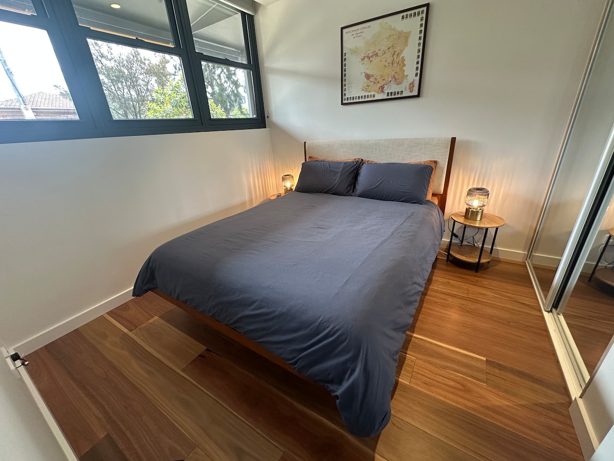 Prenočišče z osebnostjo, ki se idealno nahaja na listnati cesti St Kilda Road in leži med Albert Park in Fawkner Park, kjer se živahno mestno življenje sreča z mirnimi zelenimi površinami. V notranjosti je vse pripravljeno za udobno bivanje brez stresa. Zunaj je na zasebnem dvorišču osupljiva stenska poslikava priznanega uličnega umetnika Adnateja (dobitnika nagrade Archibald Packing Room leta 2024). Pogosti tramvaji omogočajo enostaven dostop do CBD-ja, plaž in tržnic. Uživajte v popolni mešanici udobja, kulture in priročnosti.